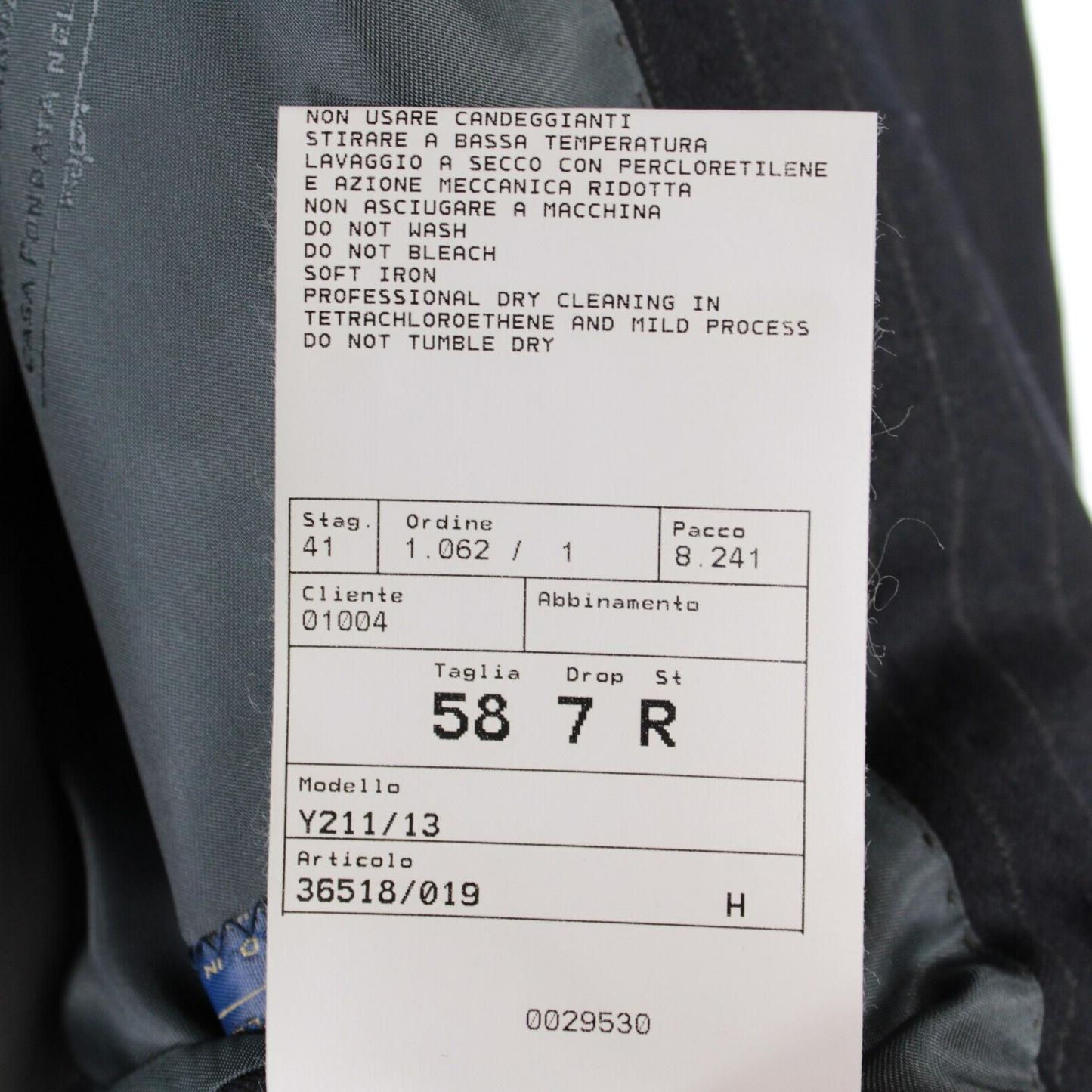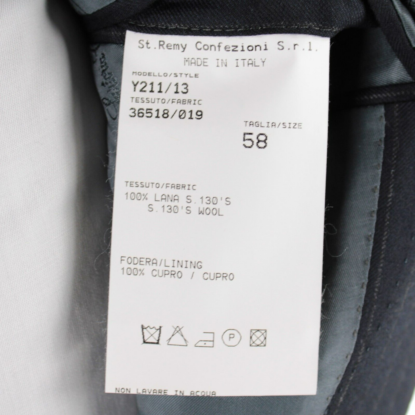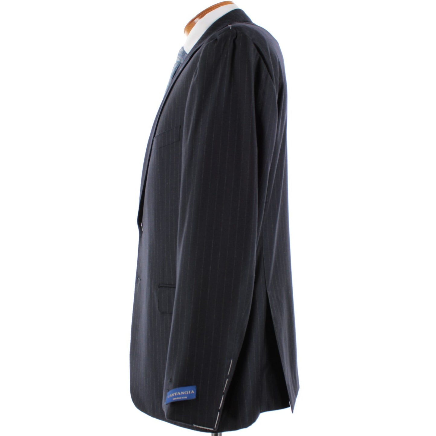 Castangia NWT Super 130 Wool Two Piece Suit 58R (48R US) Blue w/ Gray Pinstripes