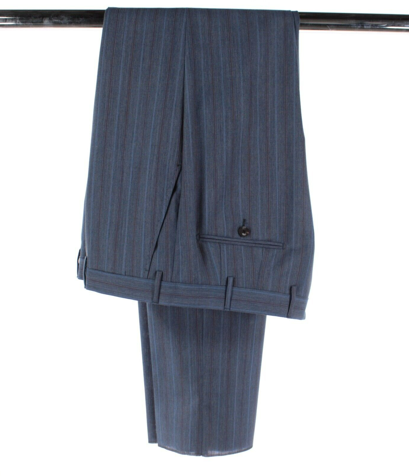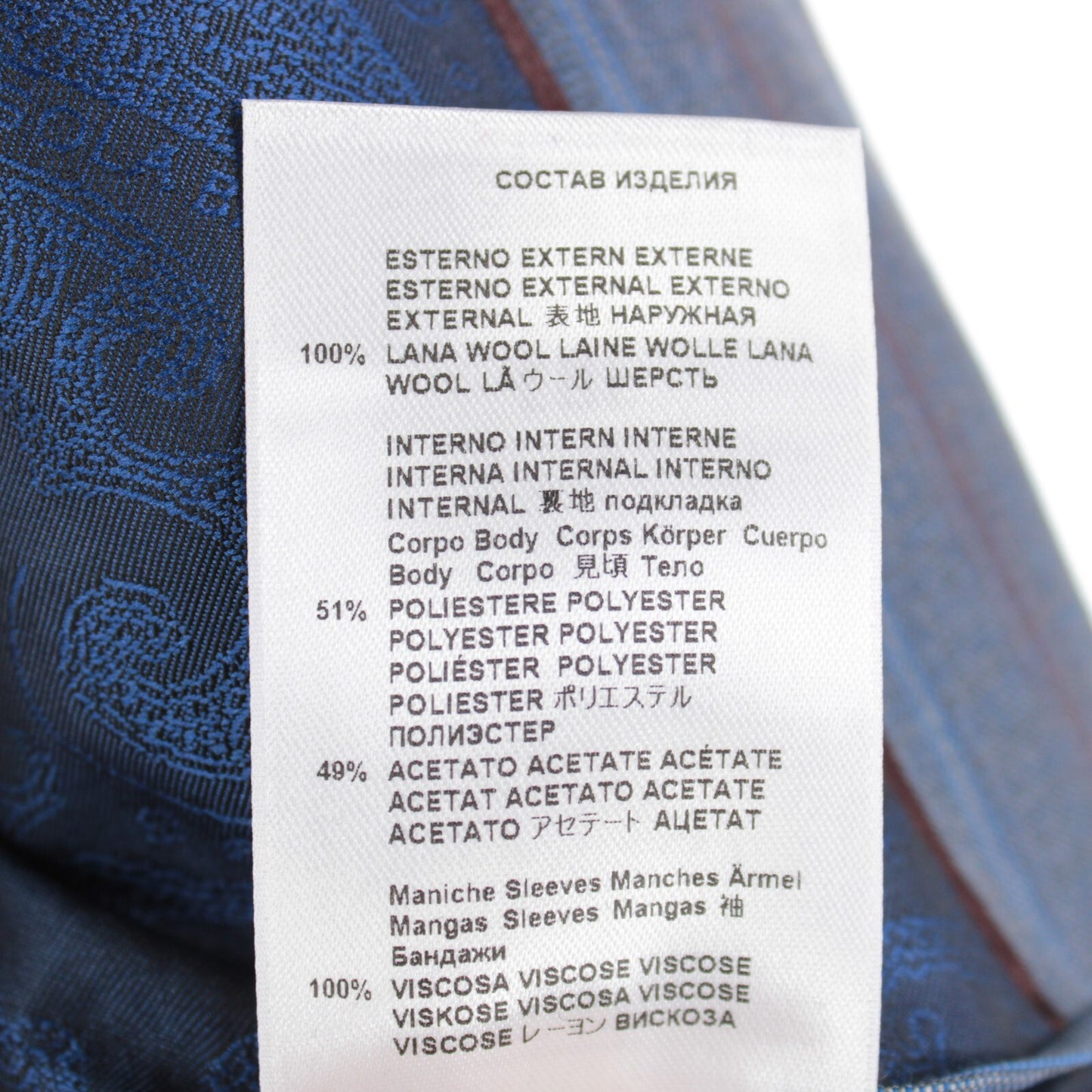 Etro NWT 100% Wool Two Piece Suit Size 52 (42 US) In Blue & Burgundy Striped