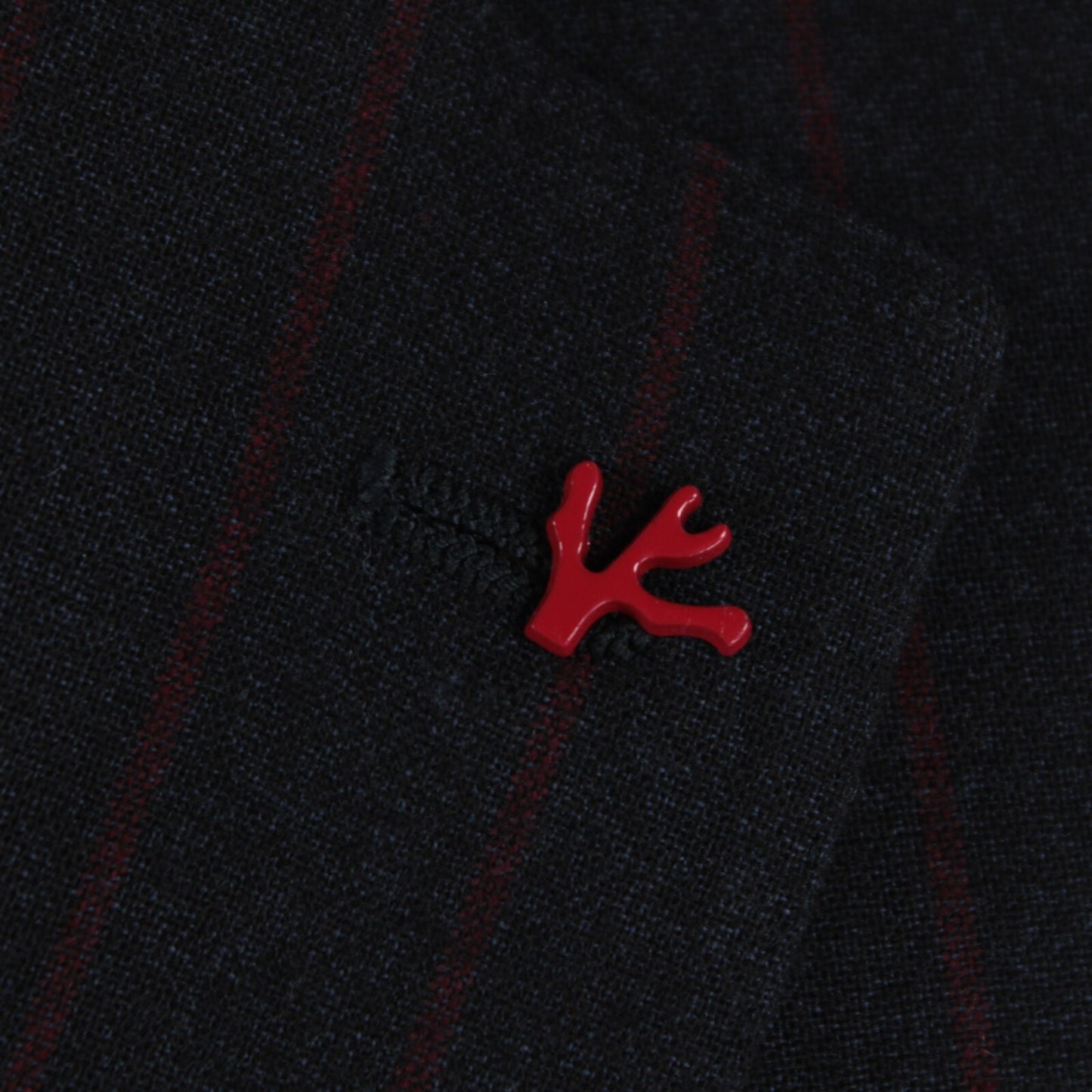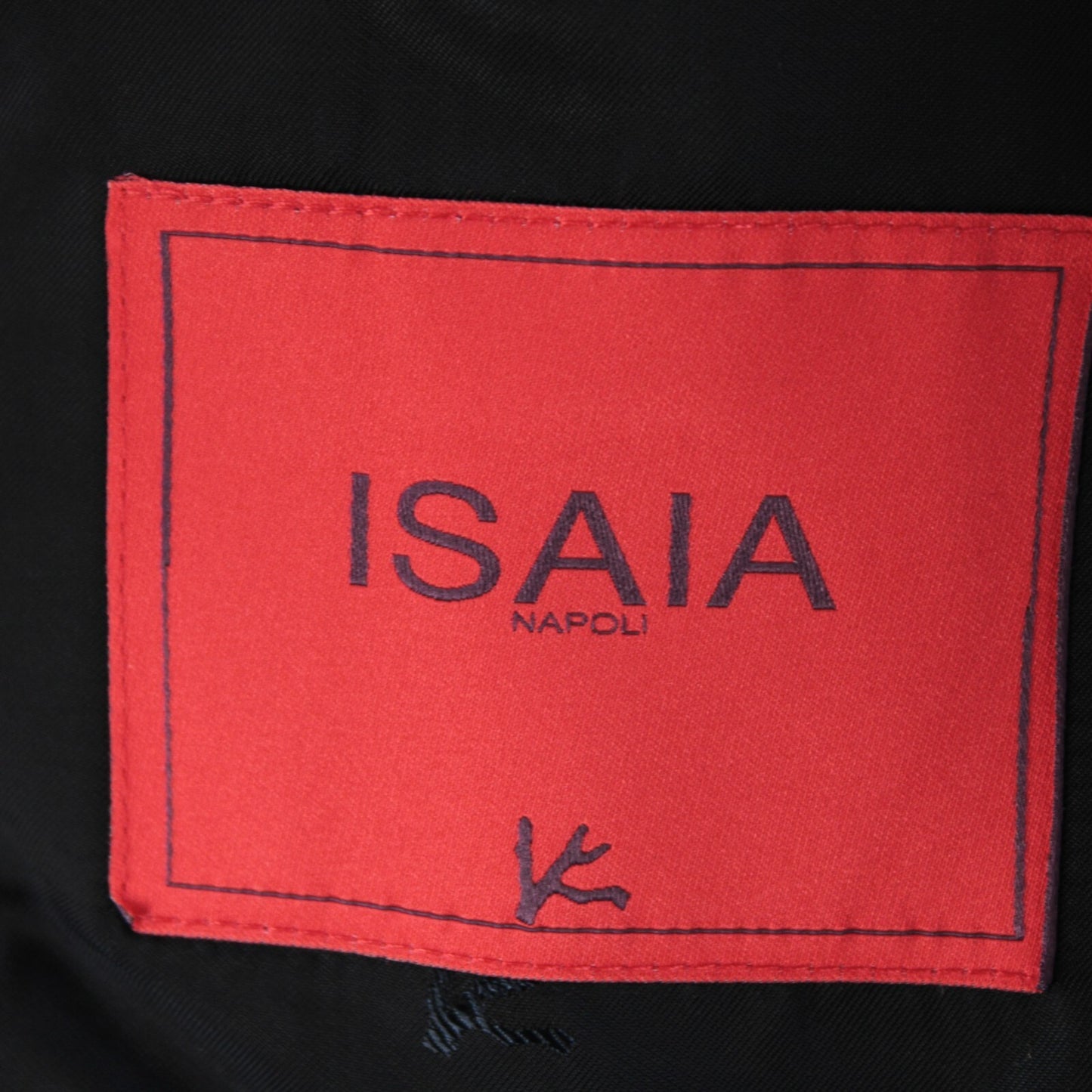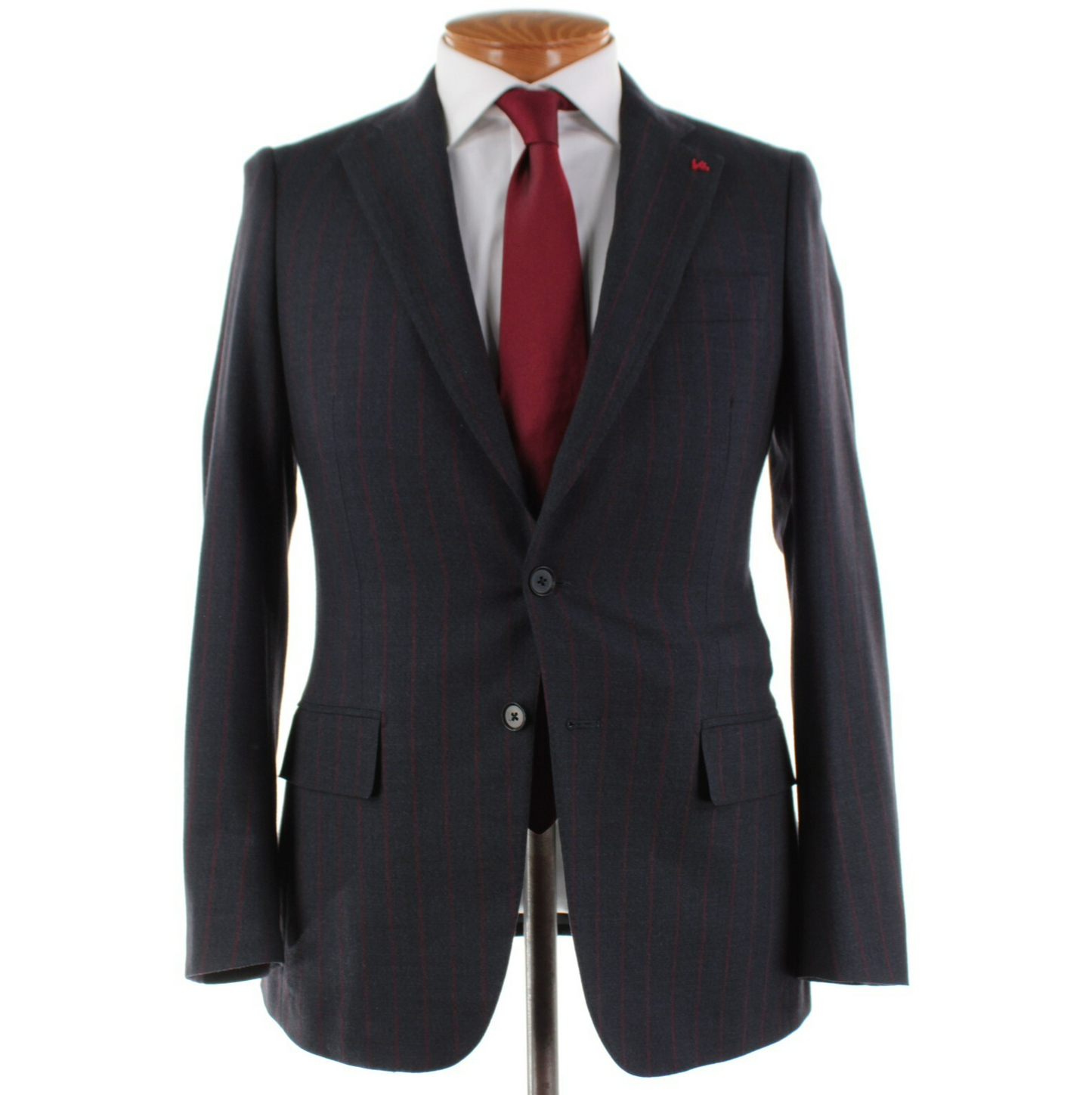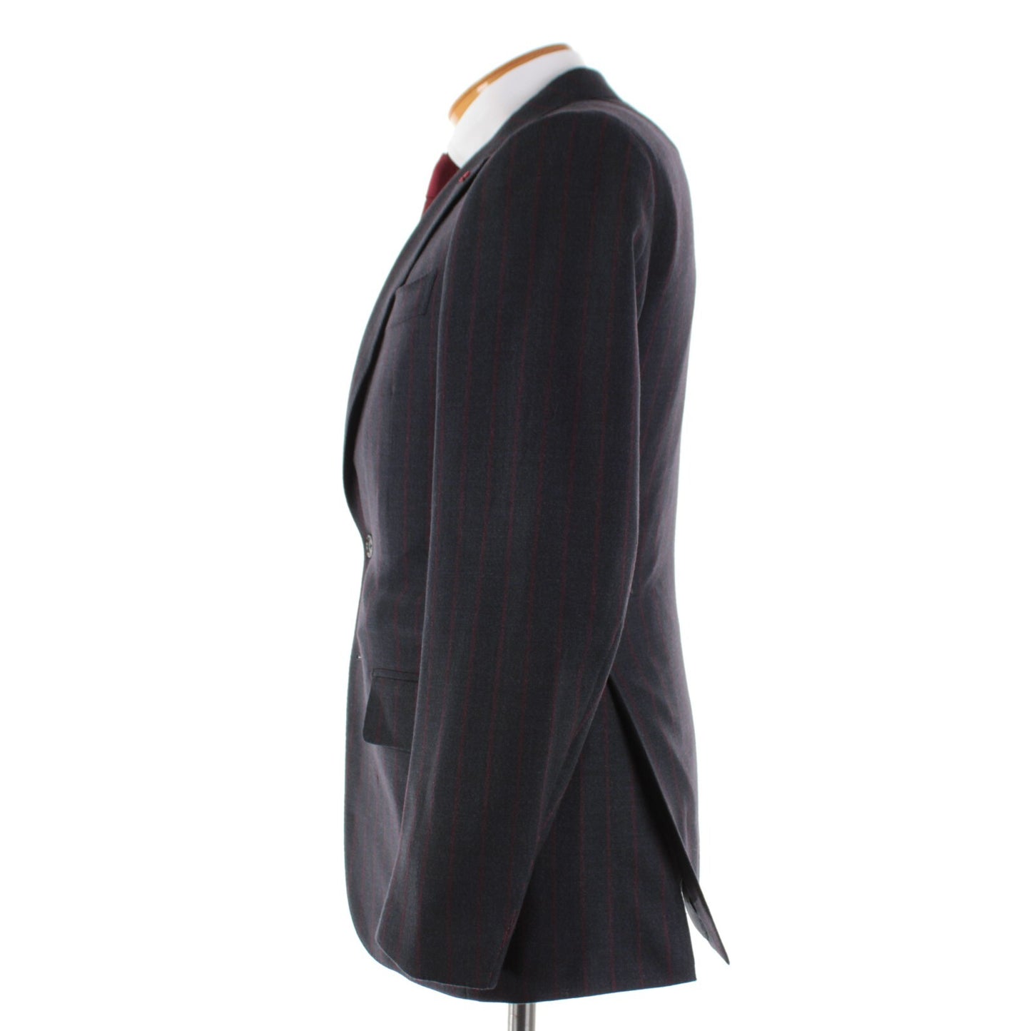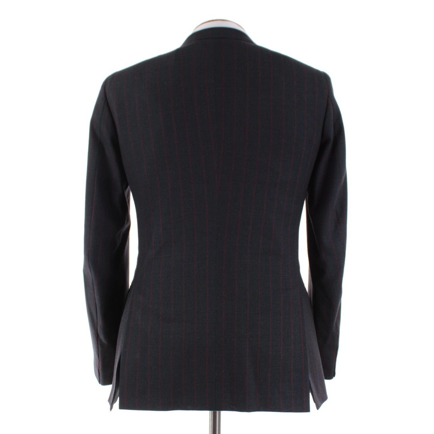 Isaia NWT 100% Wool Two Piece Suit Size 46R (36R US) In Blue w/ Burgundy Stripes