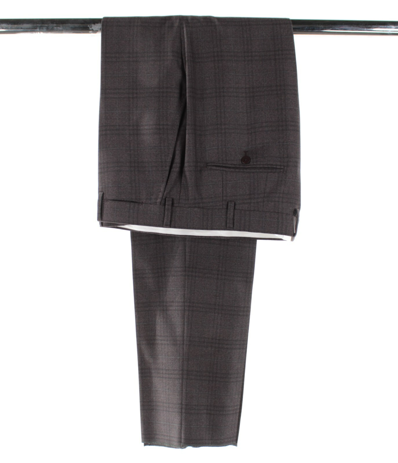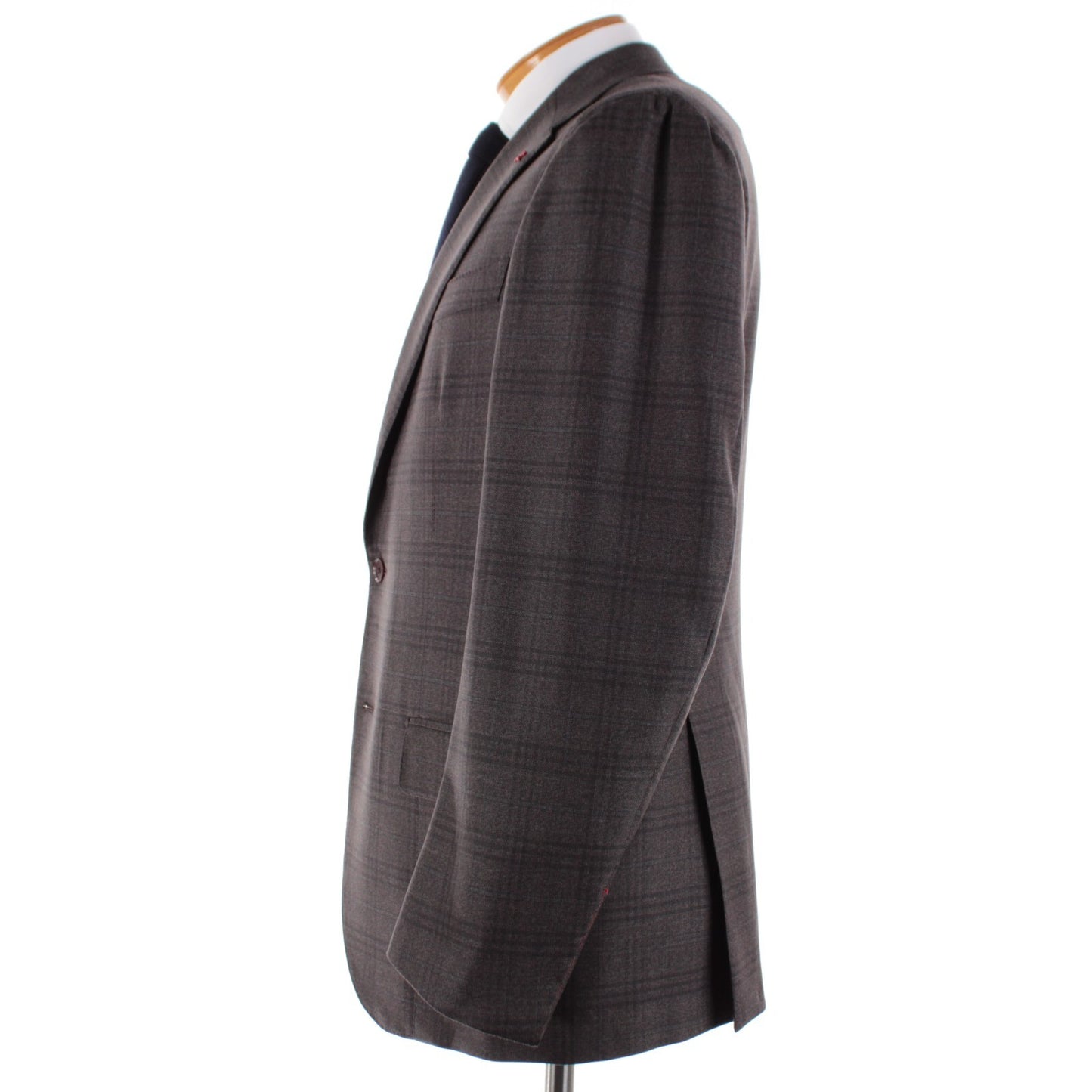 Isaia NWT 100% Wool Two Piece Suit Size 54R (44R US) In Brown w Black/Gray Plaid