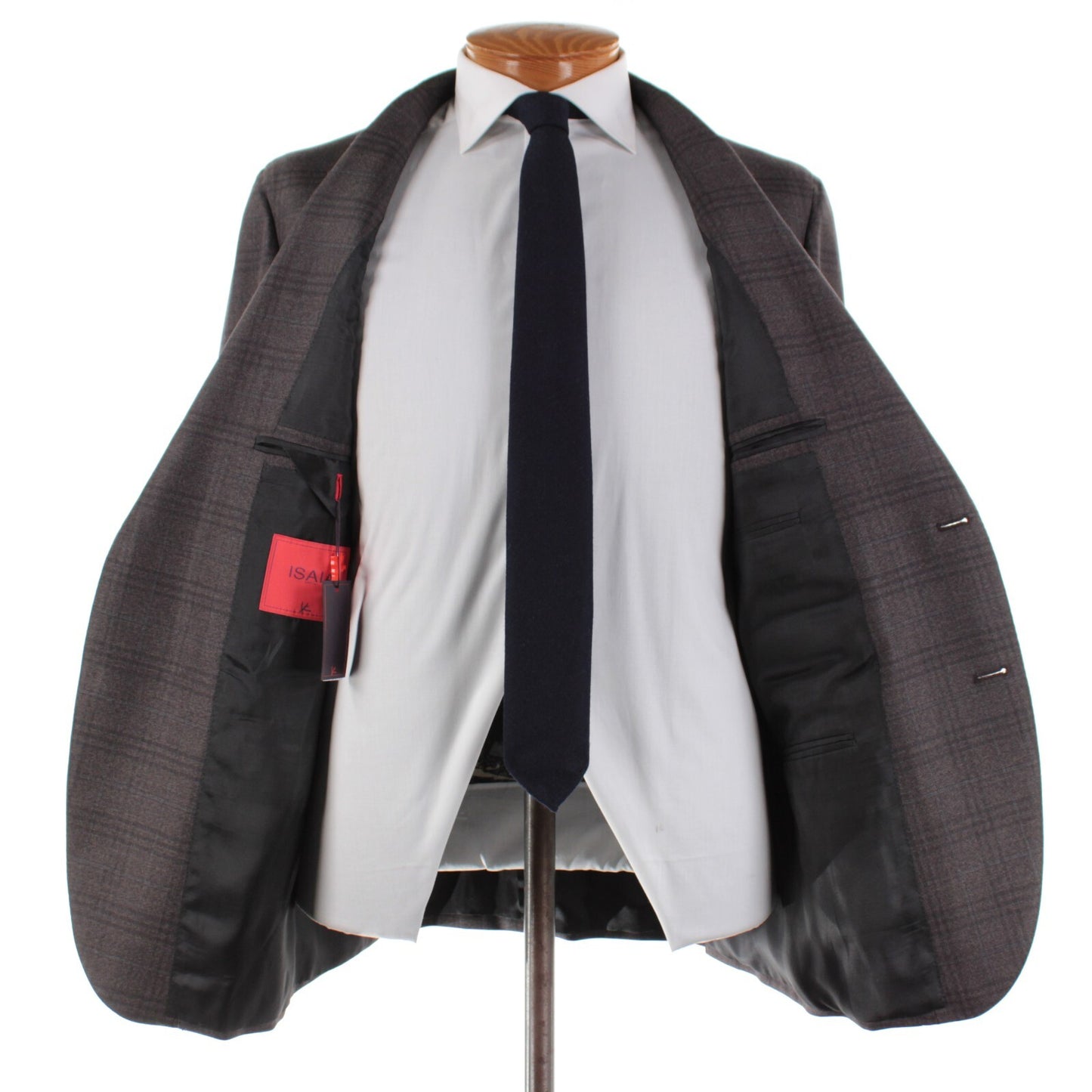 Isaia NWT 100% Wool Two Piece Suit Size 54R (44R US) In Charcoal Gray Plaid