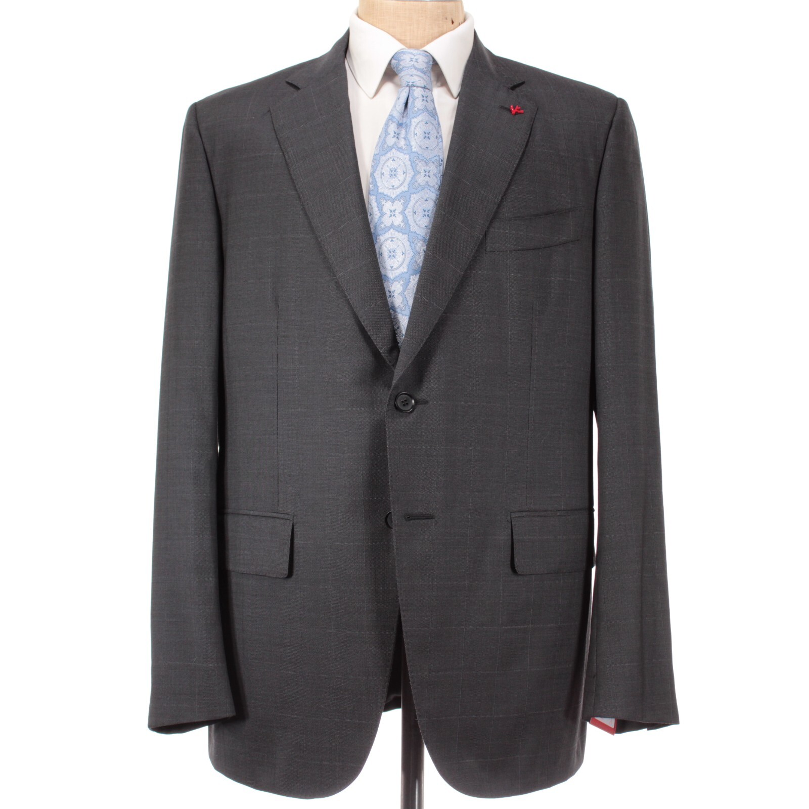 Isaia NWT Suit Size 56 46R US In Dark Gray With Subtle Windowpane 120s Wool