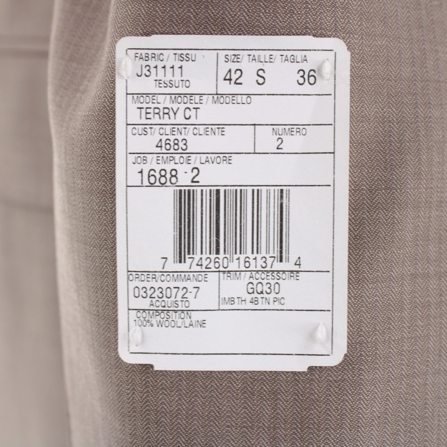 Jaz NWT 100% Wool Terry CT Two Piece Suit Size 42S US In Beige Herringbone