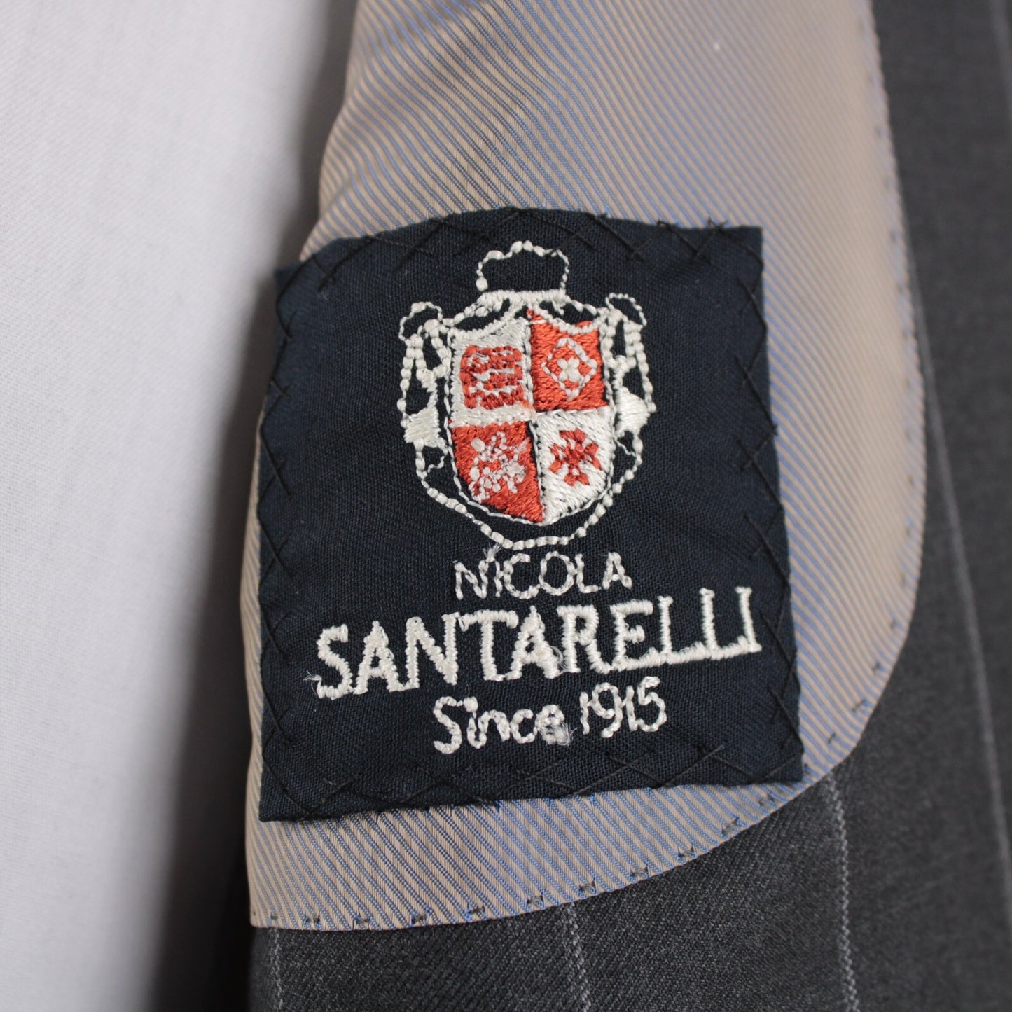 Santarelli NWT 100% Wool Two Piece Suit Size 54 (44 US) Charcoal Gray Pinstripes