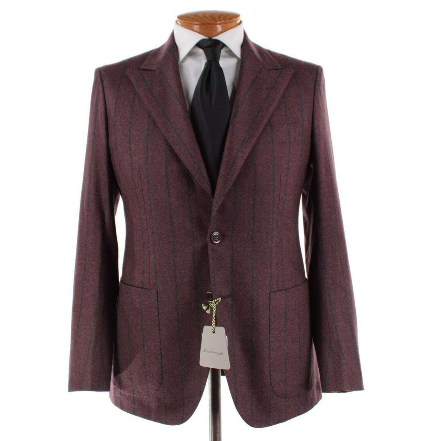 Brunello Cucinelli NWT Suit Sz 50 40R Dark Blue W/ Wide Orange Stripe Flannel