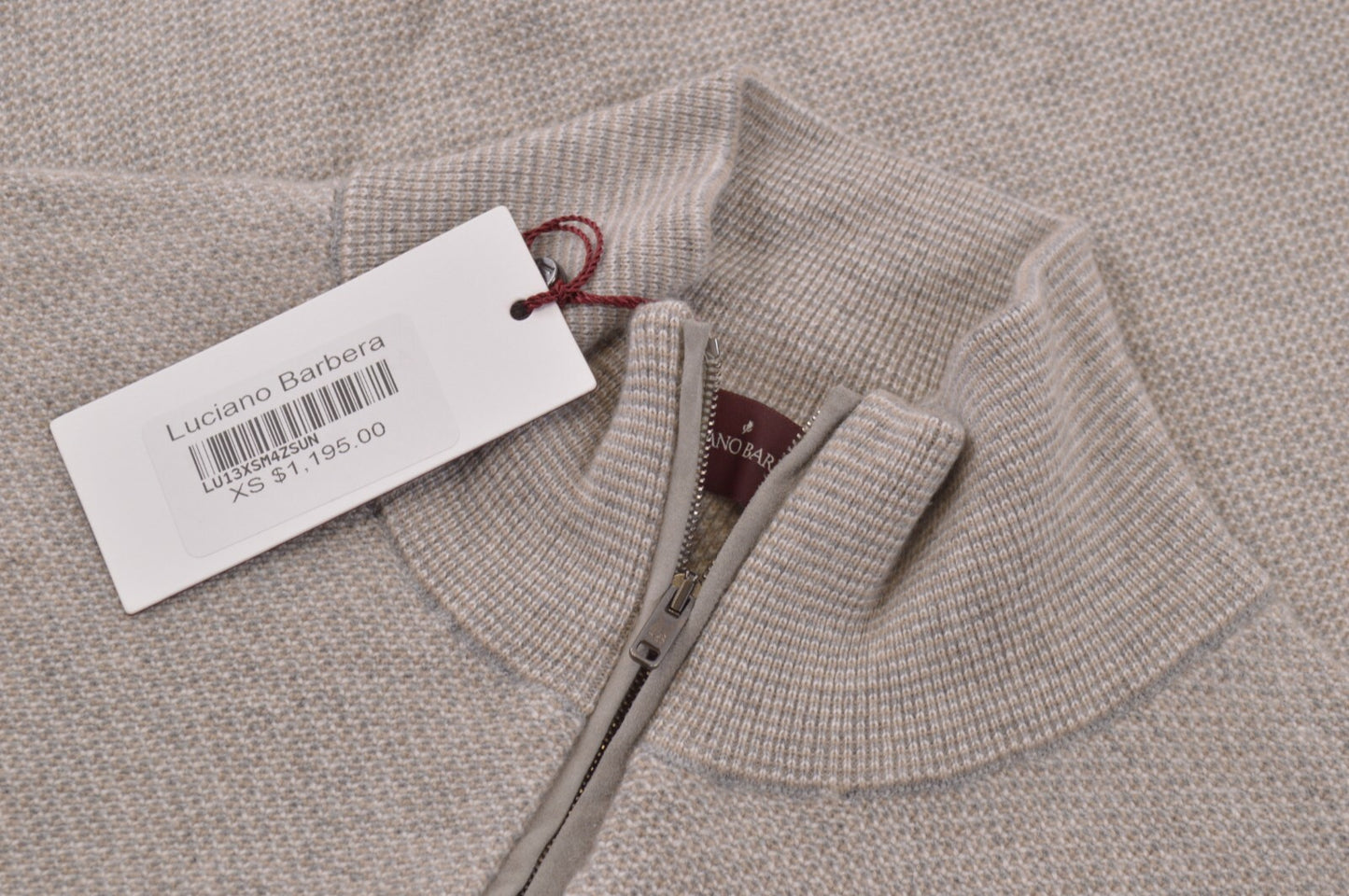 Luciano Barbera NWT 1/4 Sweater Size 36 XS In Light Tan & Gray Melange Cashmere