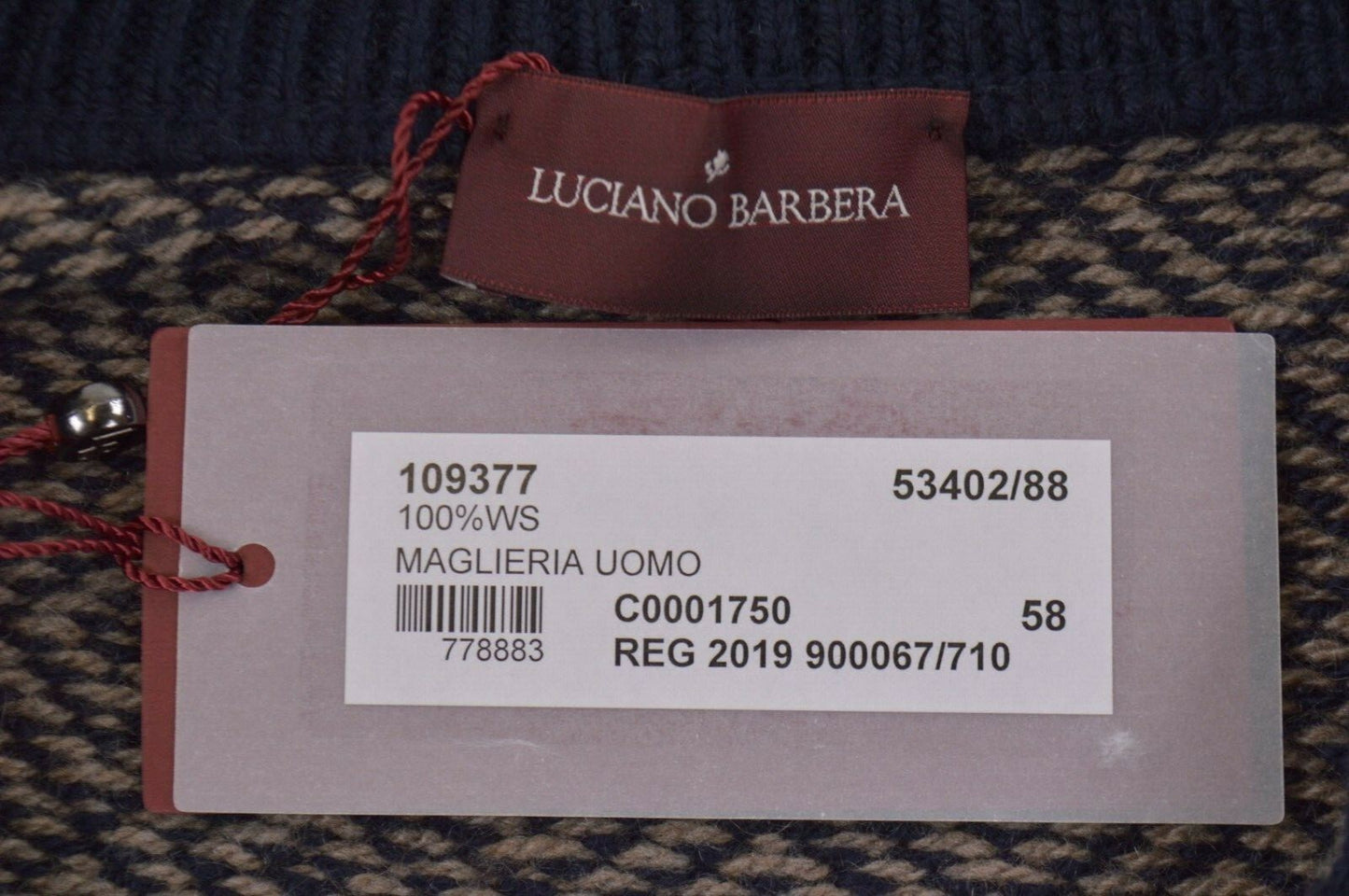 Luciano Barbera NWT 1/4 Zip Sweater 58 2XL US Tan Blue Geometric Pure Cashmere
