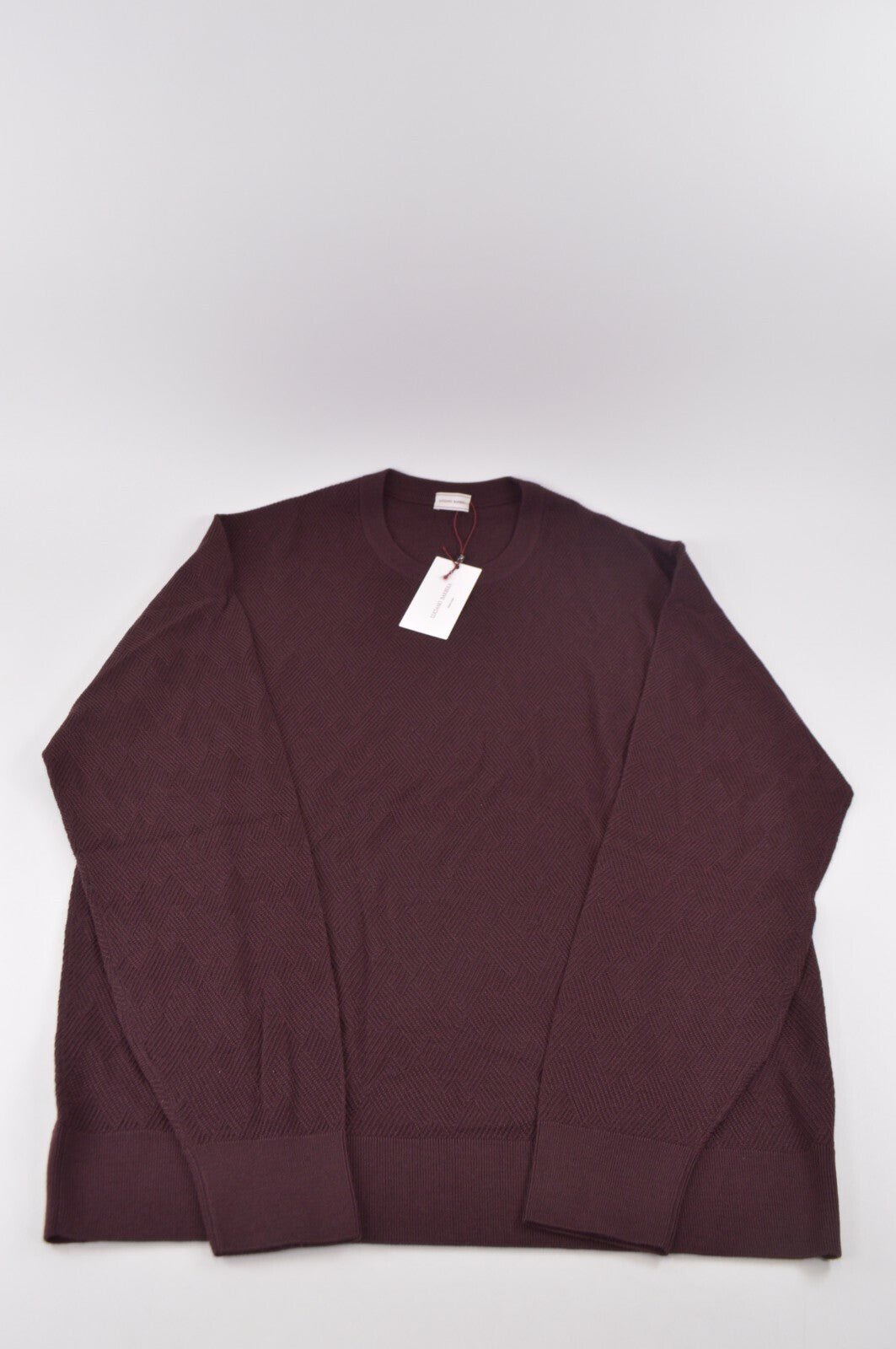 Luciano Barbera NWT Crew Neck Sweater 56 XL US Textured Burgundy Wool/Silk/Cash