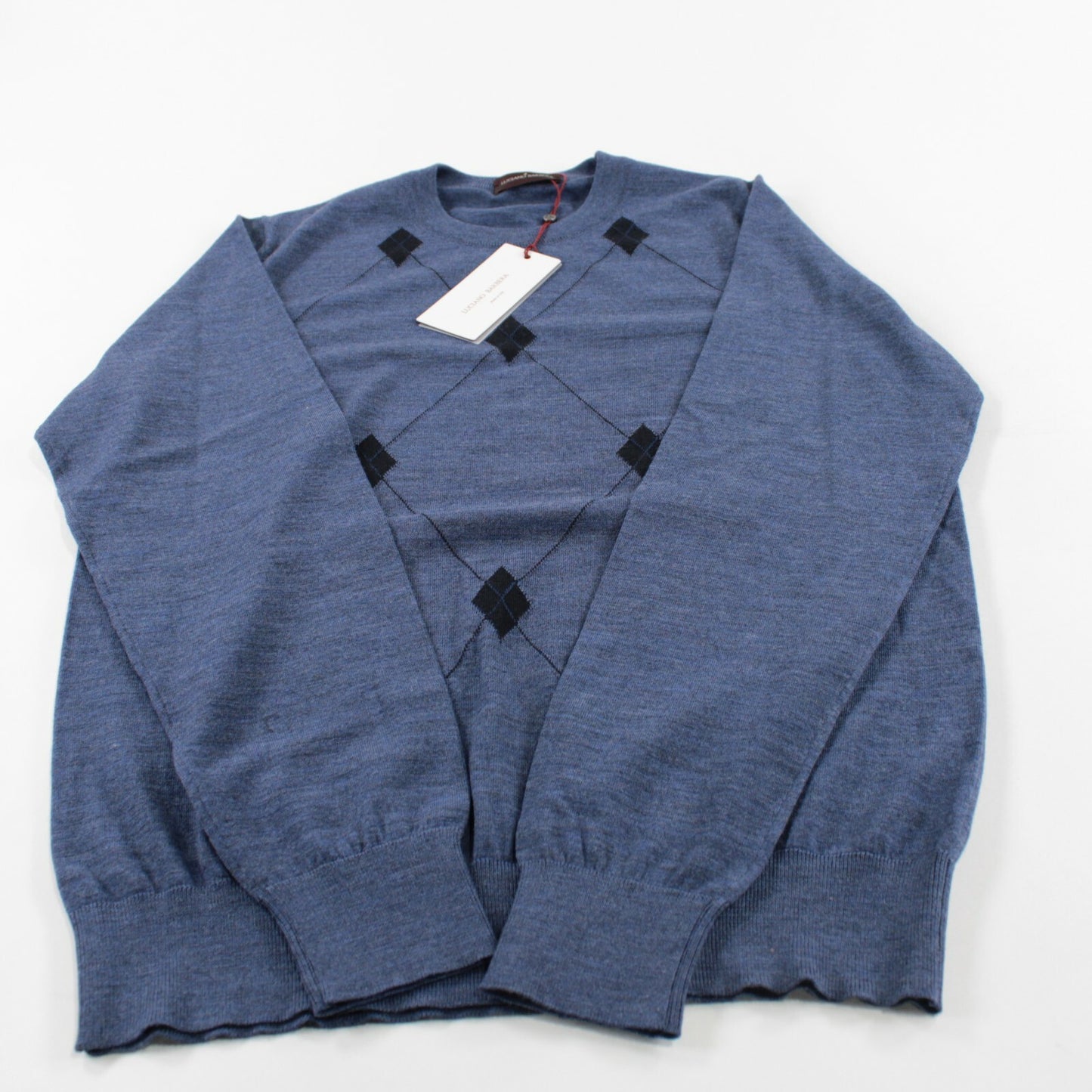 Luciano Barbera NWT Crew Neck Sweater Size 48 S US Blue Argyle Wool / Silk