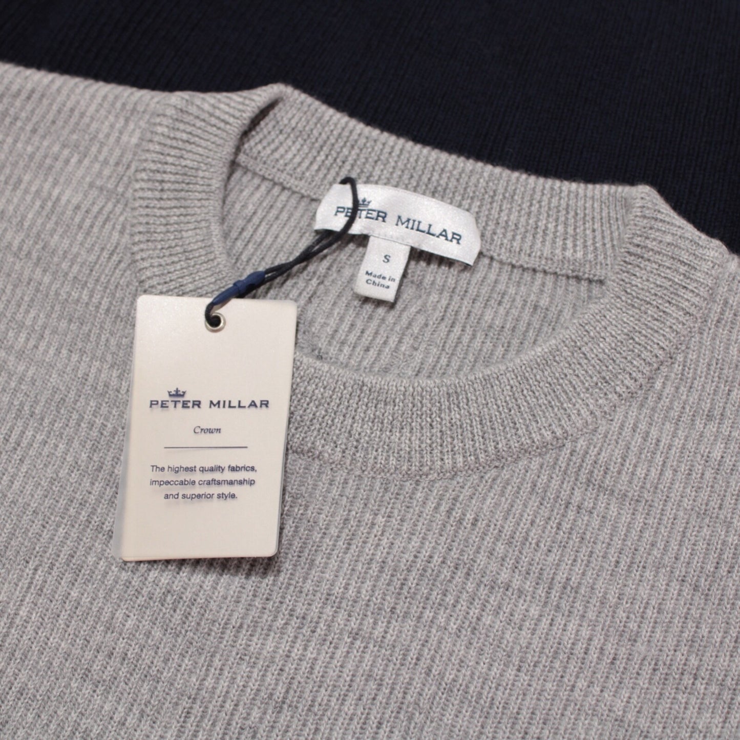 Peter Millar NWT Crew Neck Sweater Size S US In Gray Orange & Blue 100% Wool