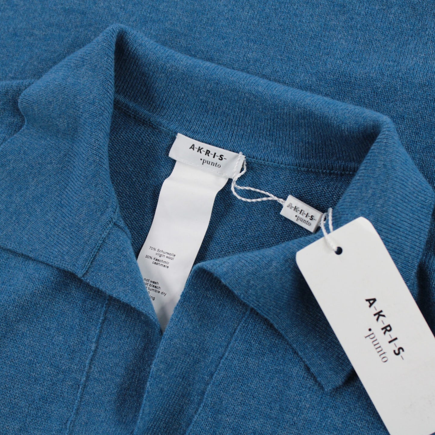 Akris Punto NWT Wool/Cashmere Collared Sweater Size 10 in Solid Blue