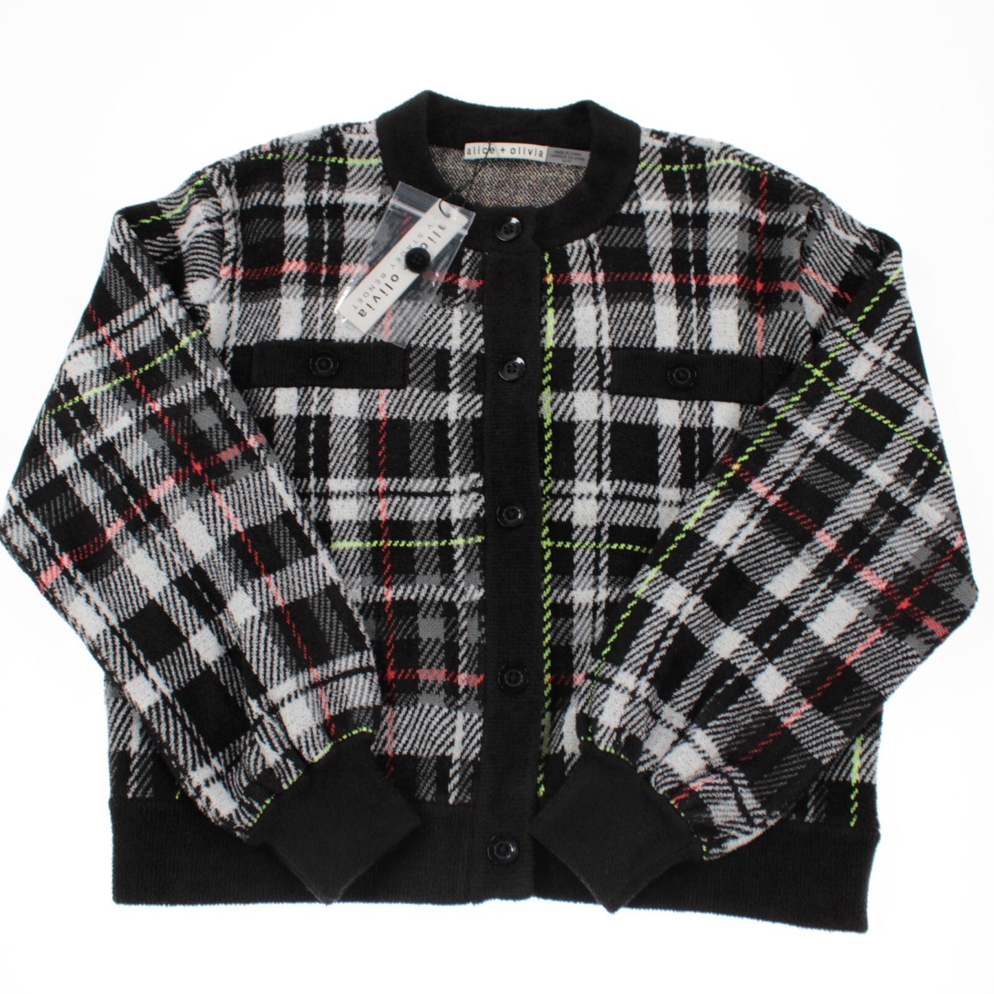 Alice + Olivia NWT Cardigan Sweater Size XS Freedom Plaid Black/Multi