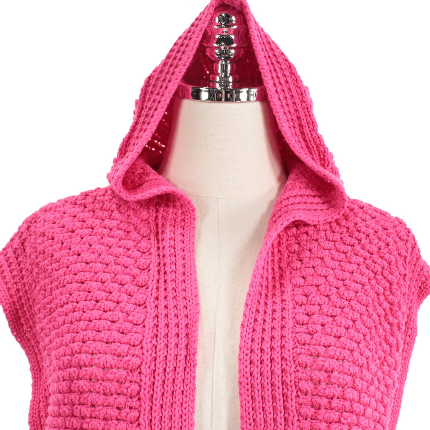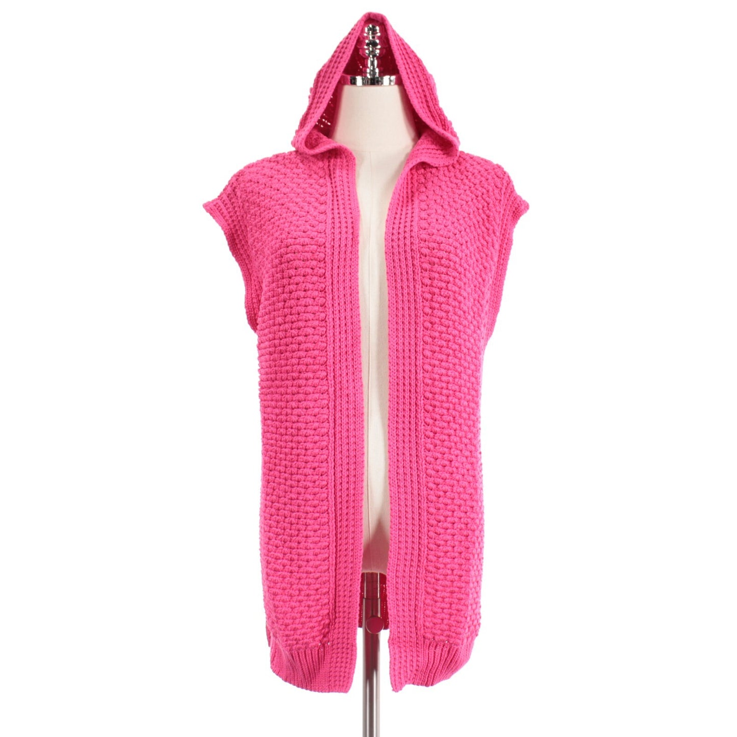 Marc Cain NWT Open Front Sleeveless Knit Sweater w/ Hood Size N2 US 6 Hot Pink