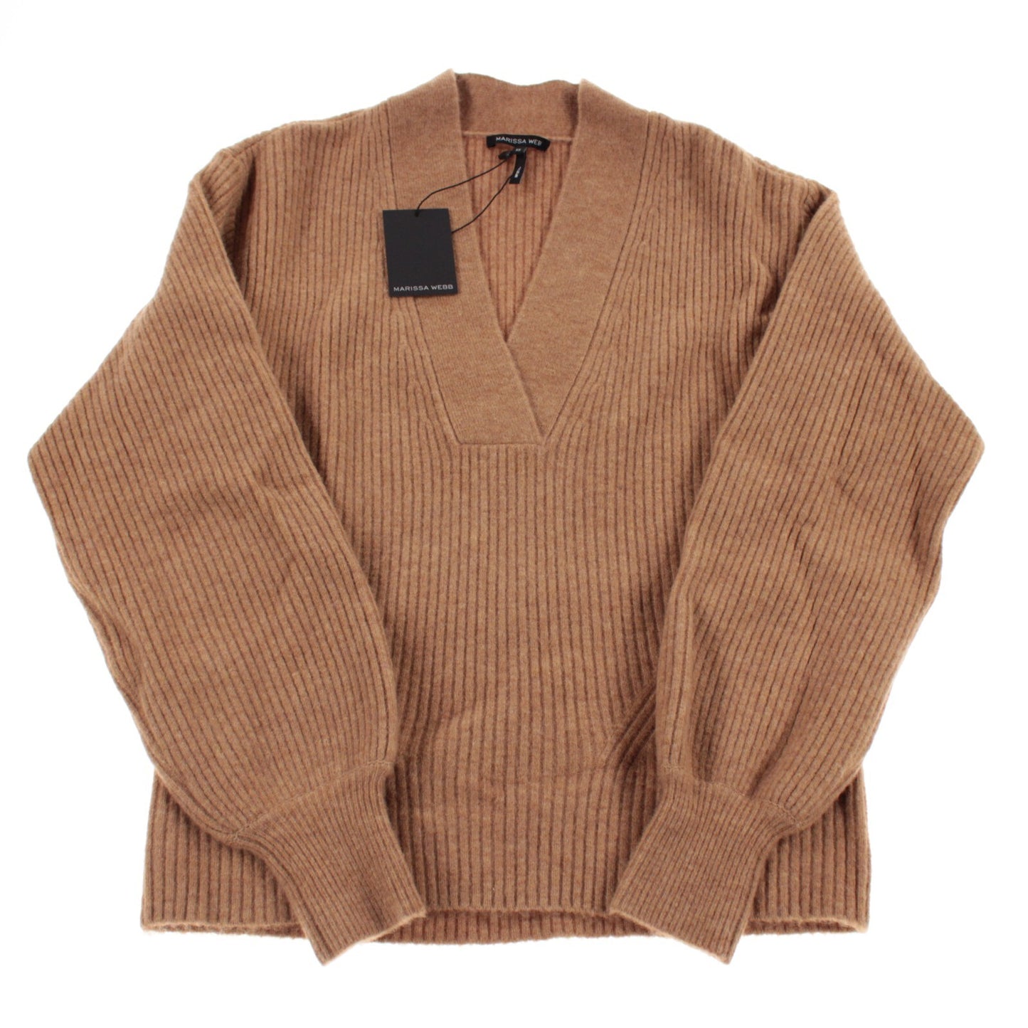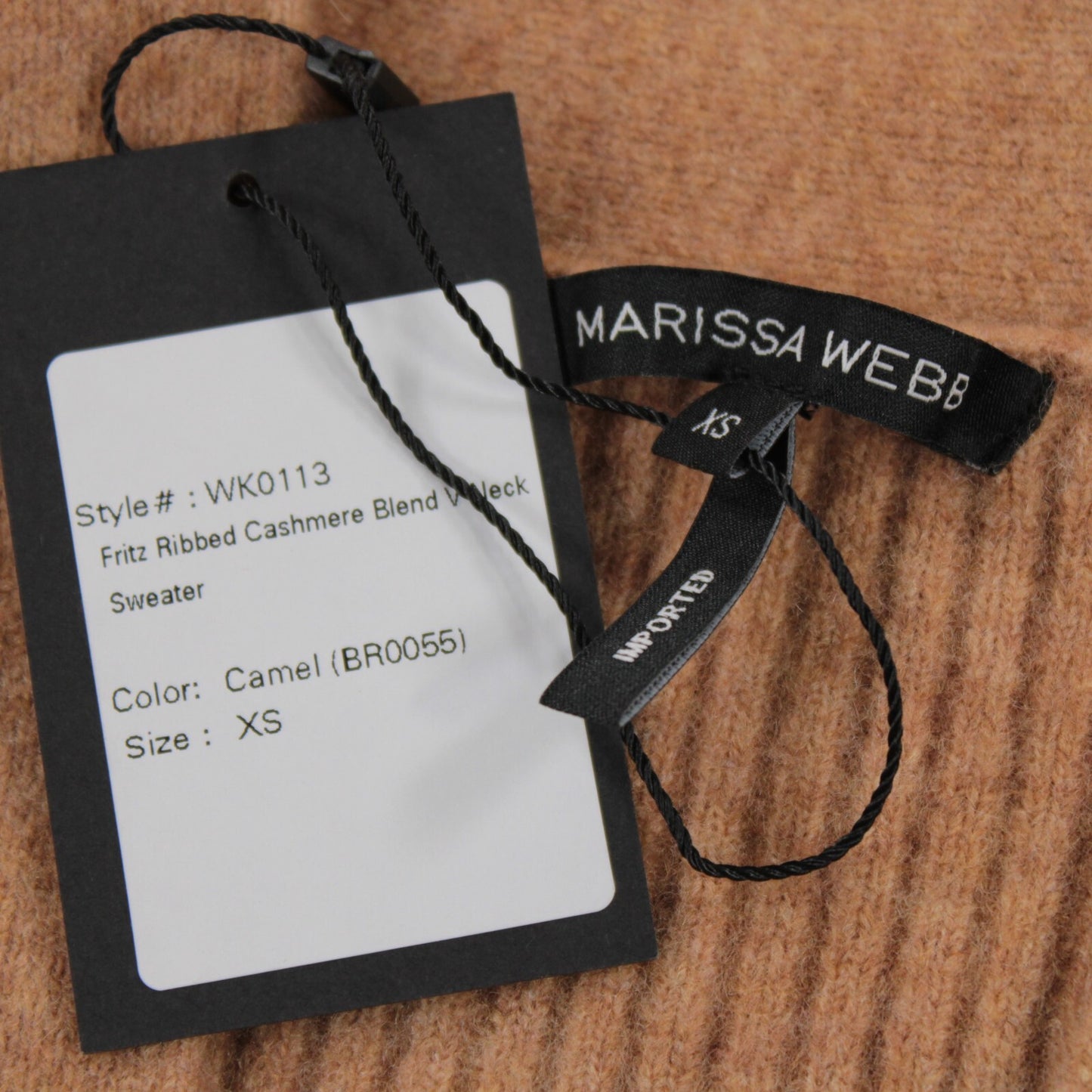 Marissa Webb NWT Fritz Ribbed Cashmere Blend V Neck Sweater Size XS in Camel
