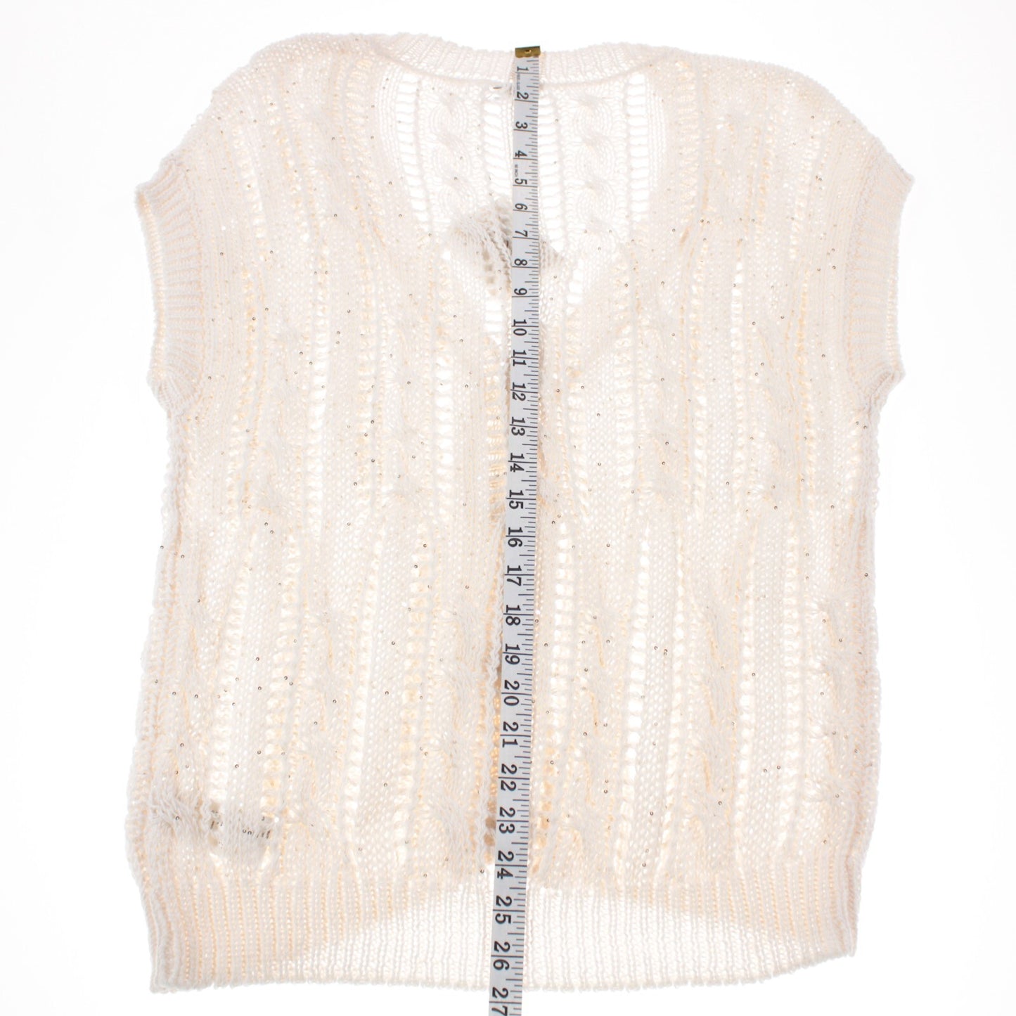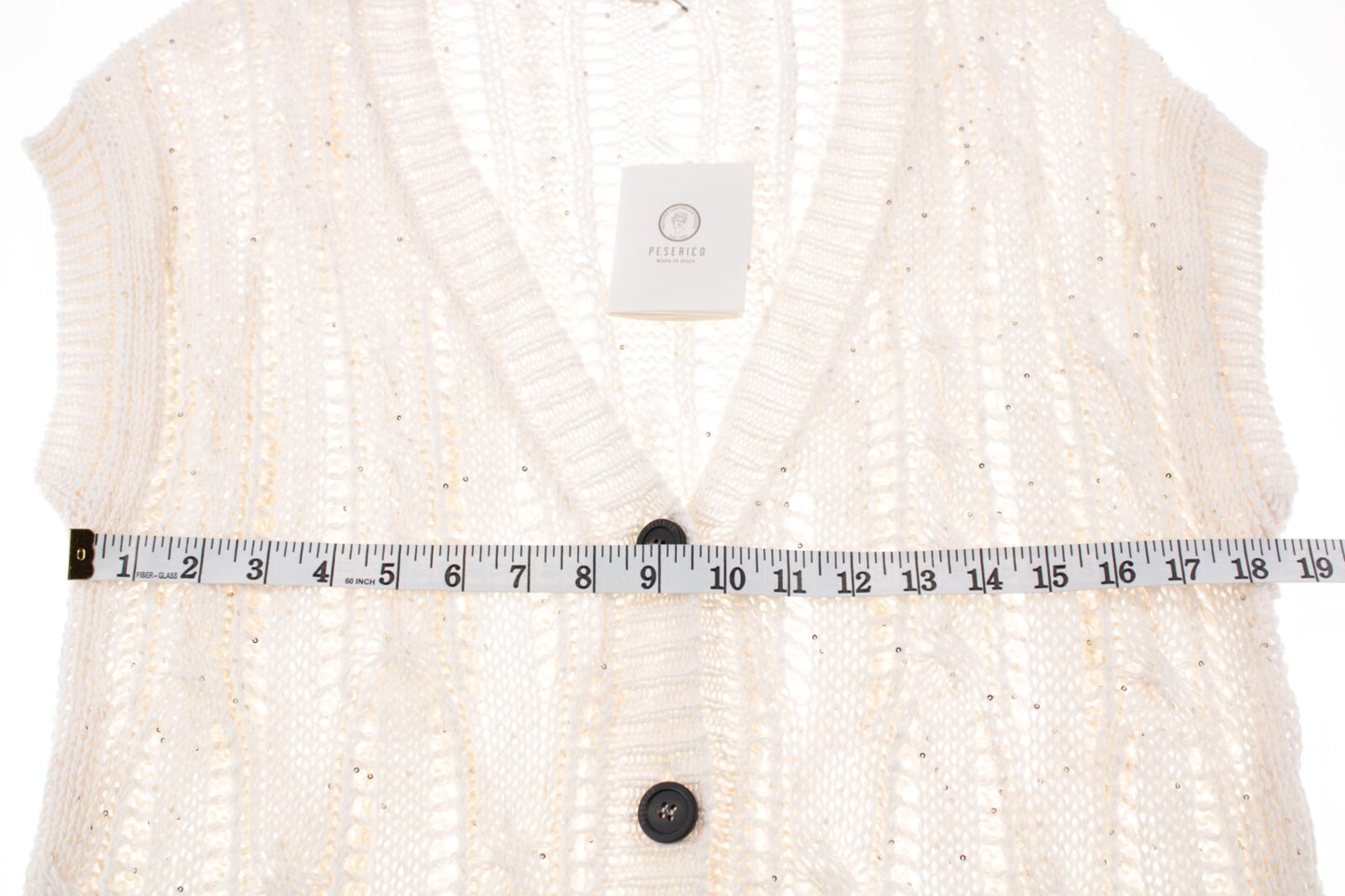 Peserico NWT Cotton Blend Sleeveless Cardigan Sweater Sz 44 US 8 Ivory w Sequins