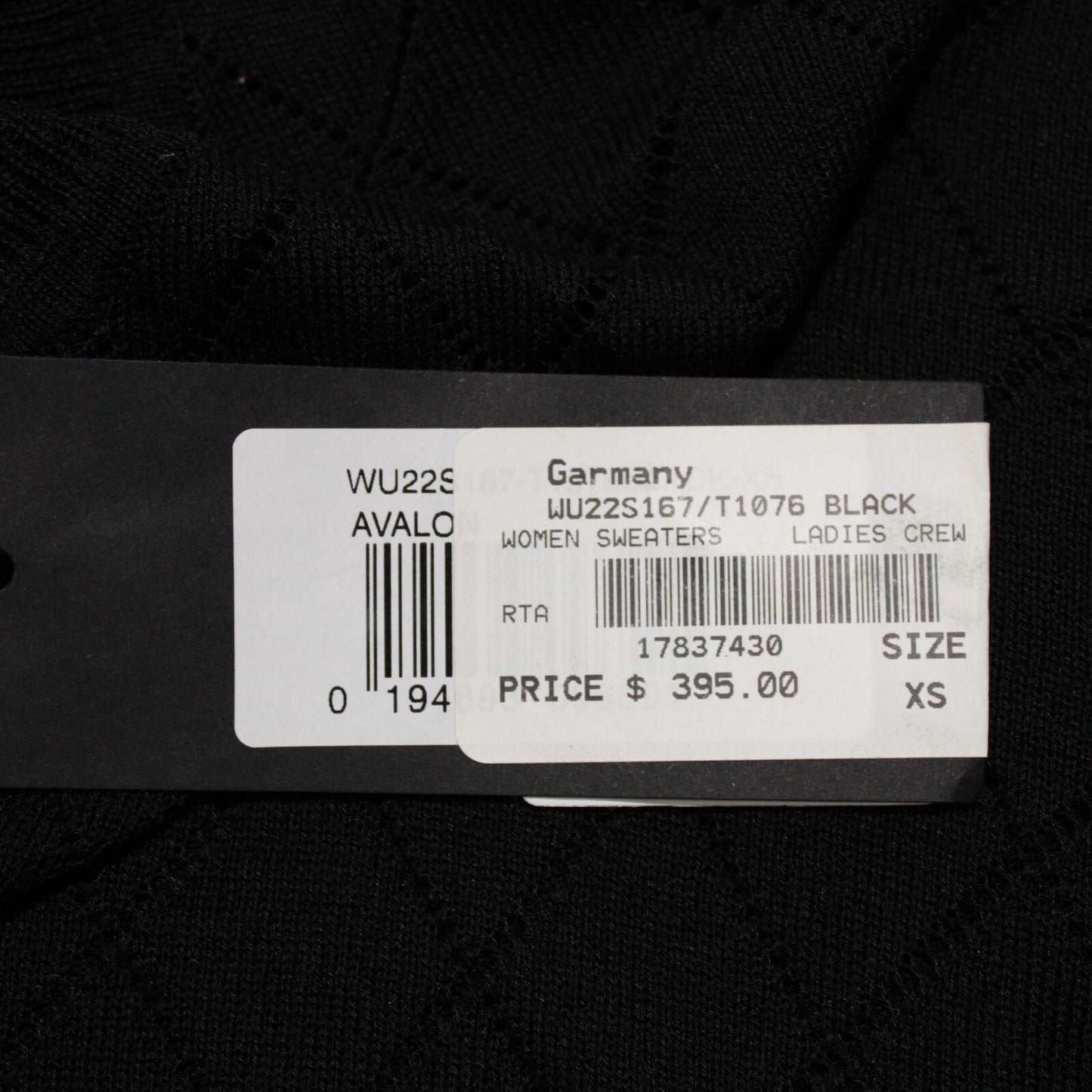 RtA NWT Avalon Semi-Sheer Argyle Crew Neck Sweater Size XS Black 100% Tencel