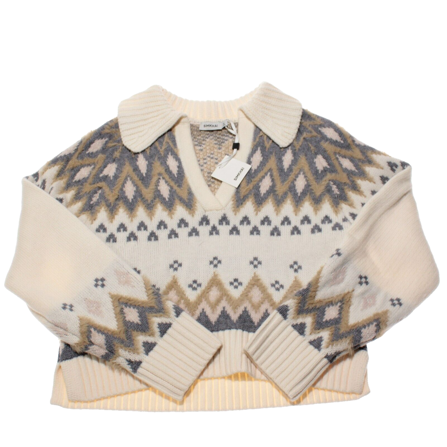 Simkhai NWT Fairisle Collared Sweater Size XS in Ivory/Multi Wool/Cashmere Blend