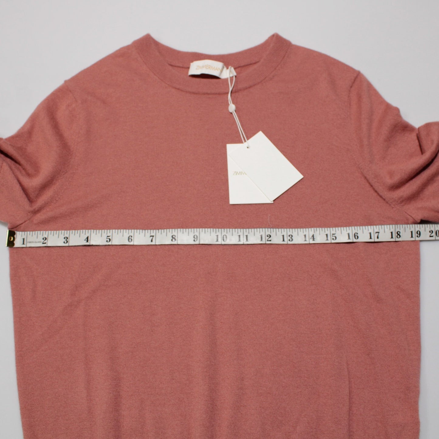 Zimmermann NWT Short Sleeve Sweater Size 3 US 10 Solid Rose Pink 100% Cashmere