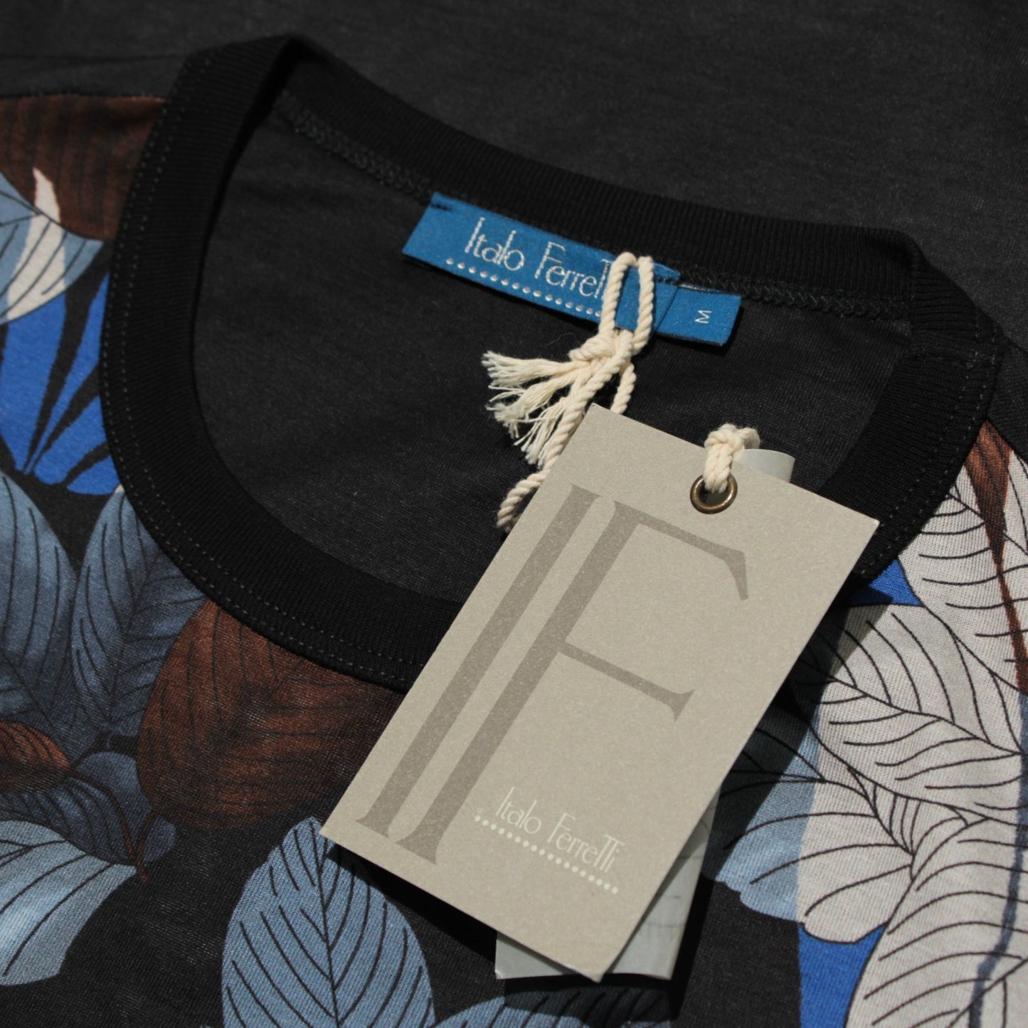 Italo Ferretti NWT Short Sleeve T-Shirt Size M in Black/Blue/Brown 100% Cotton