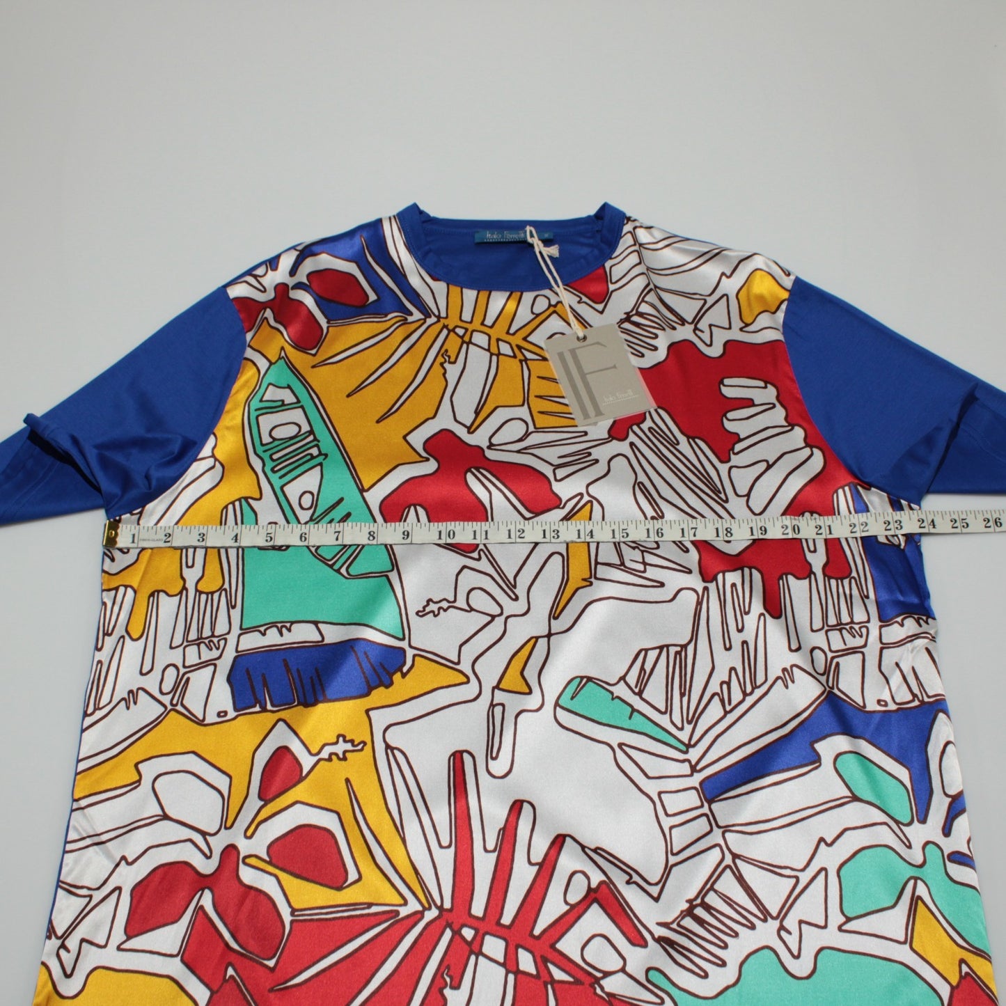 Italo Ferretti NWT Short Sleeve T-Shirt Size XL Blue/White/Multi Cotton & Silk