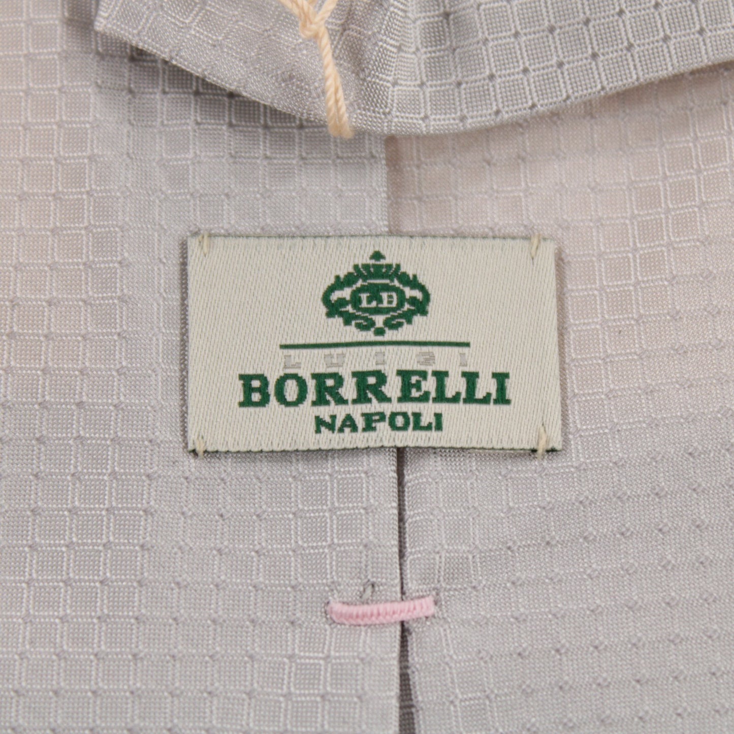 Borrelli NWT 100% Silk Tie in Light Gray with Mini Square/Check Pattern