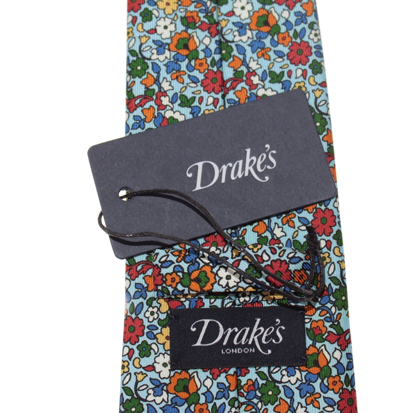 Drake's NWT Neck Tie in Blue / Multicolor Mini Floral Print 100% Silk
