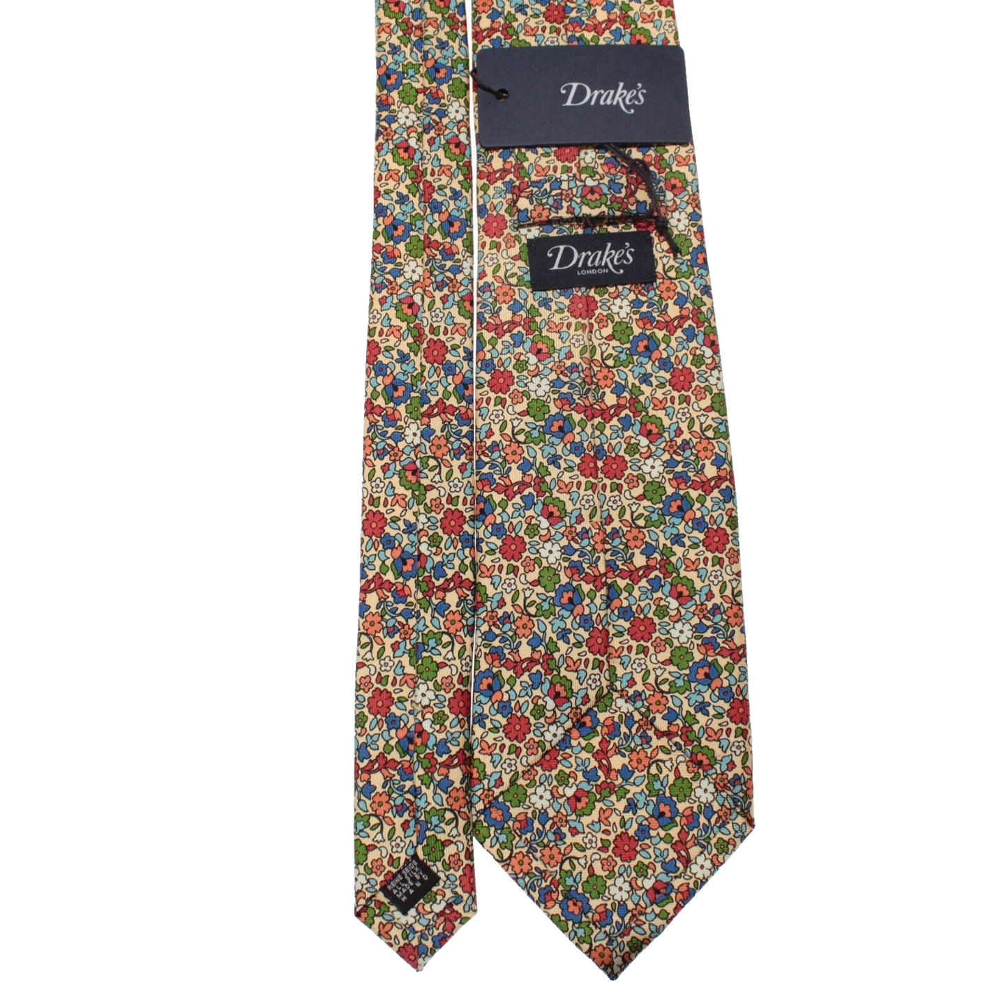 Drake's NWT Neck Tie in Yellow / Multicolor Mini Floral Print 100% Silk