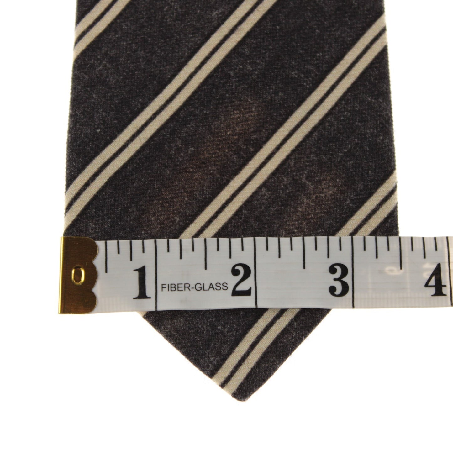 Kiton NWOT 100% Wool Seven Fold Neck Tie in Gray Melange w Black/Beige Stripes