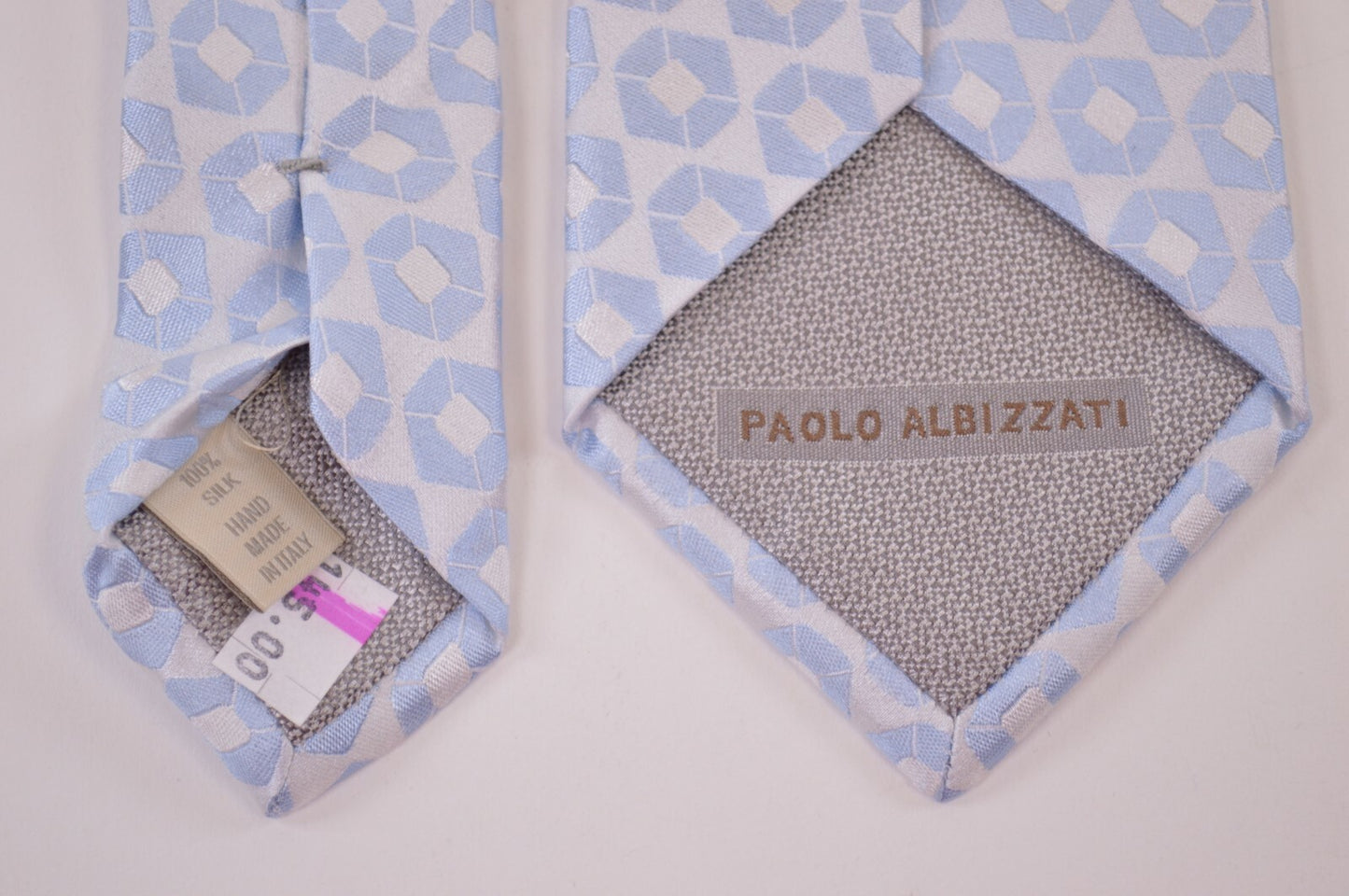 Paolo Albizzati NWT Neck Tie In White W/ Light Blue Geometric 100% Silk