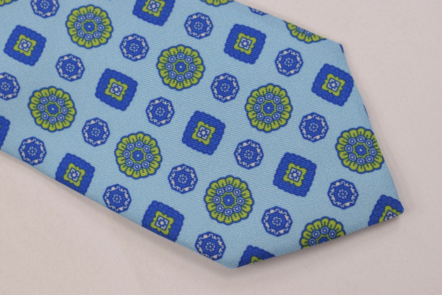 Drake's NWT Neck Tie in Navy Blue with Light Blue Geometric Print 100% Silk