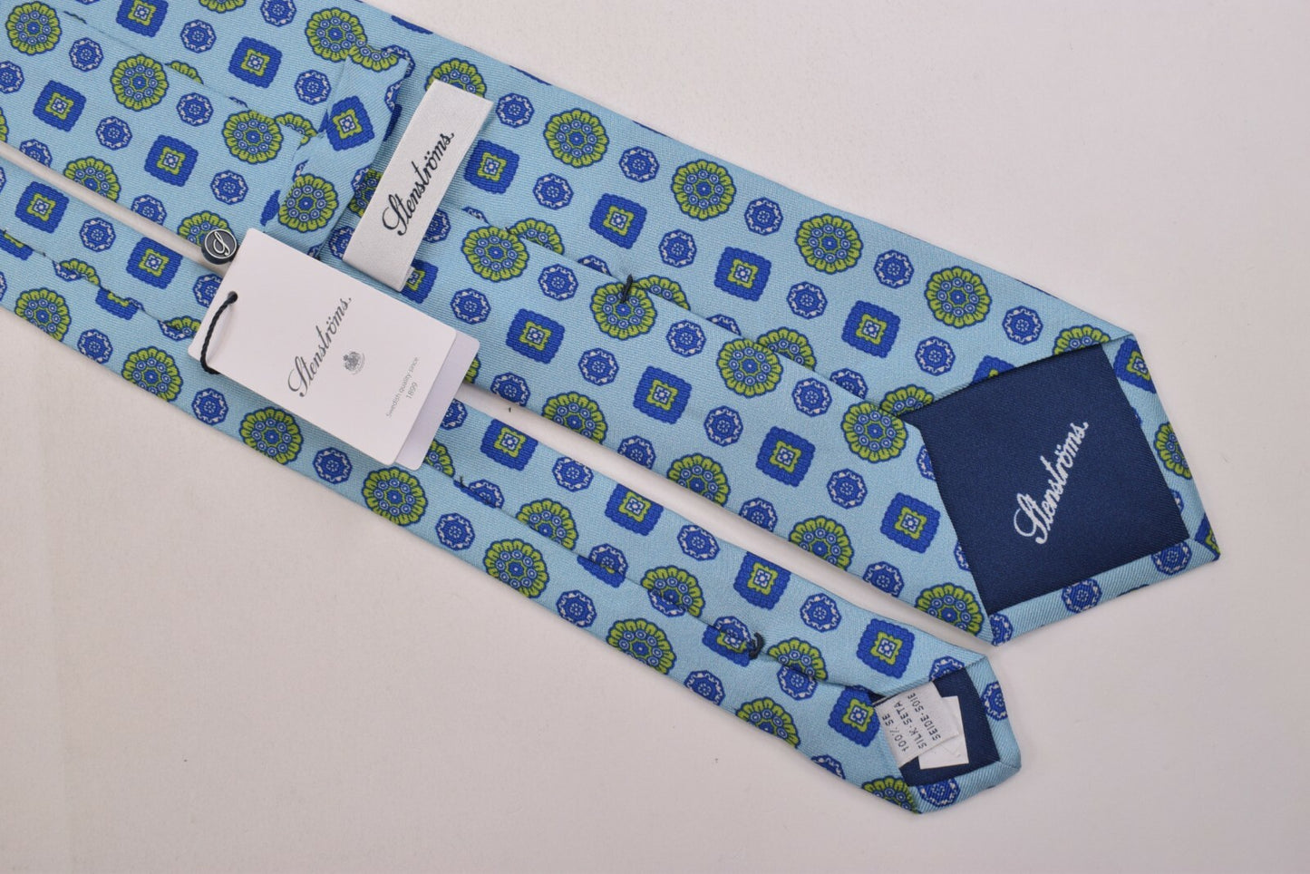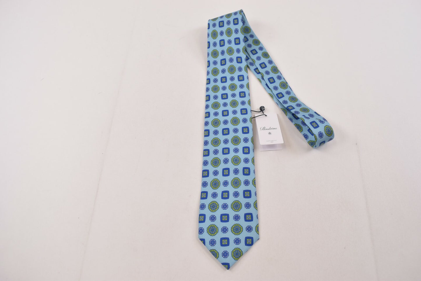 Stenstroms Neck Tie NWT Light Blue with Blue and Yellow/Green Floral 100% Silk