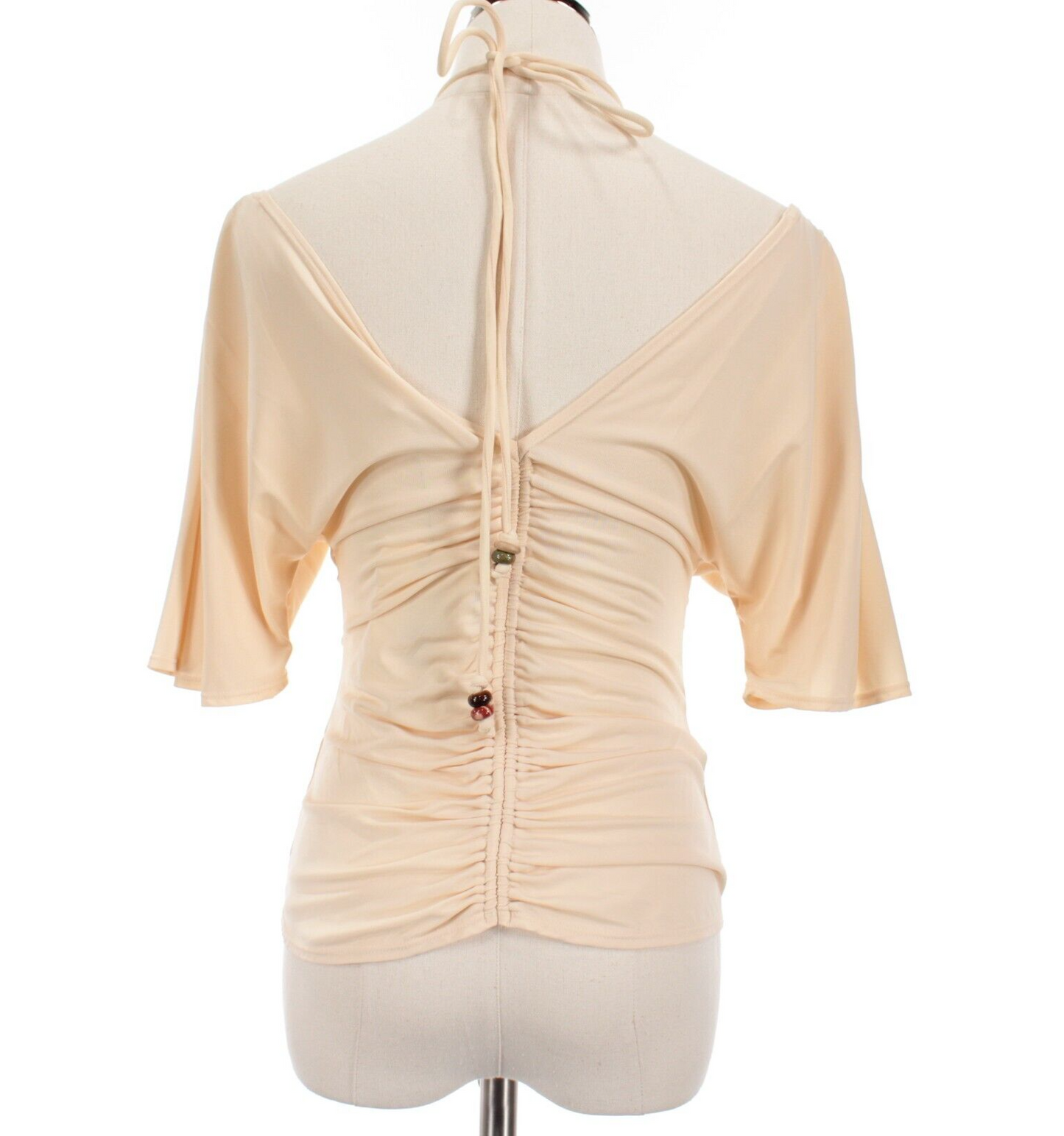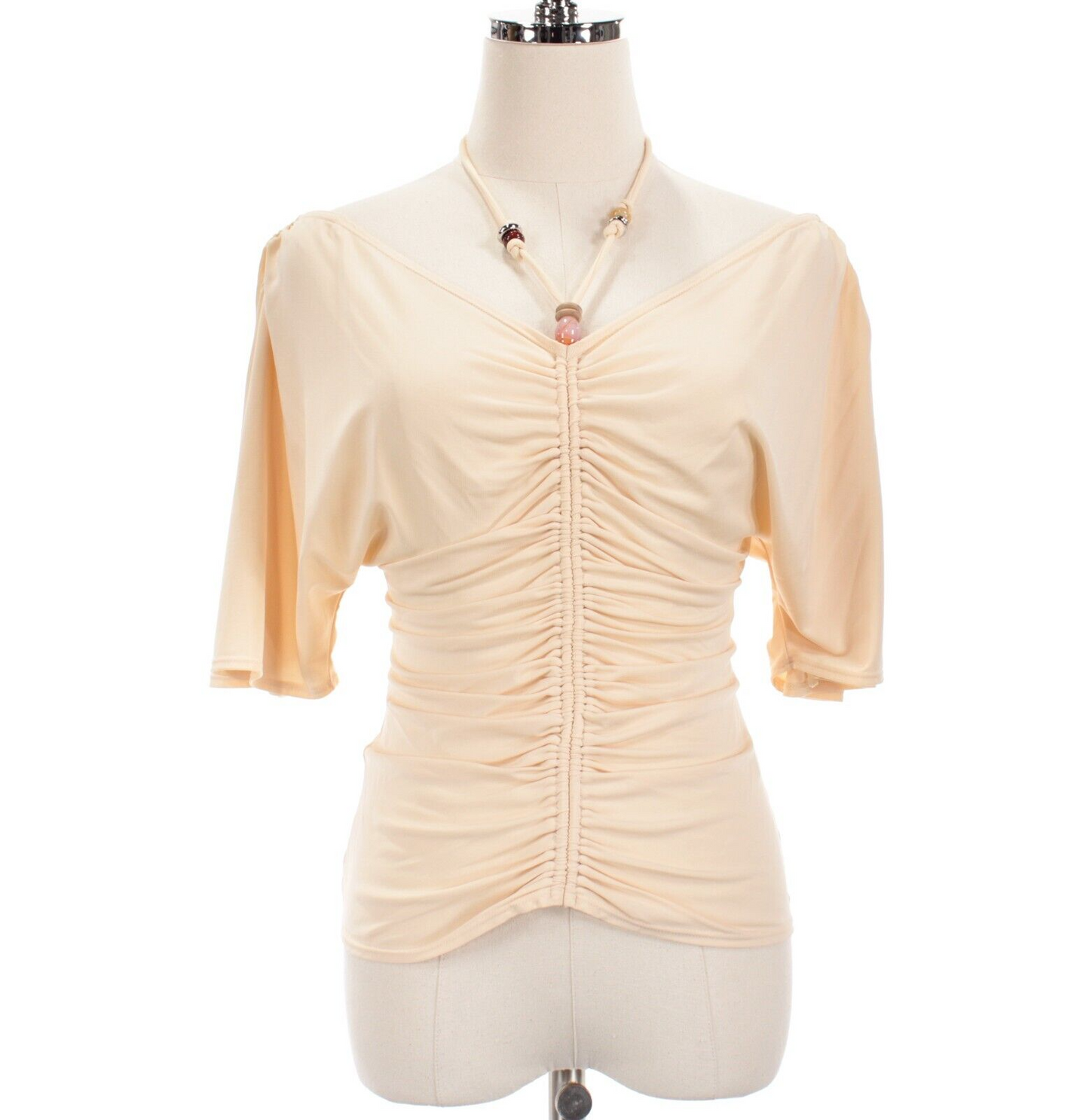 A.L.C. NWT Nina Ruched Bead-Embellished Top Size Medium in Solid Creamy Beige
