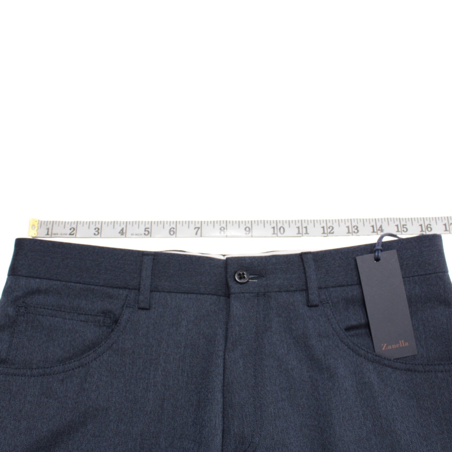 Zanella NWT 5 Pocket Jean Cut Dress Pants Size 32 US Solid Blue Wool Blend