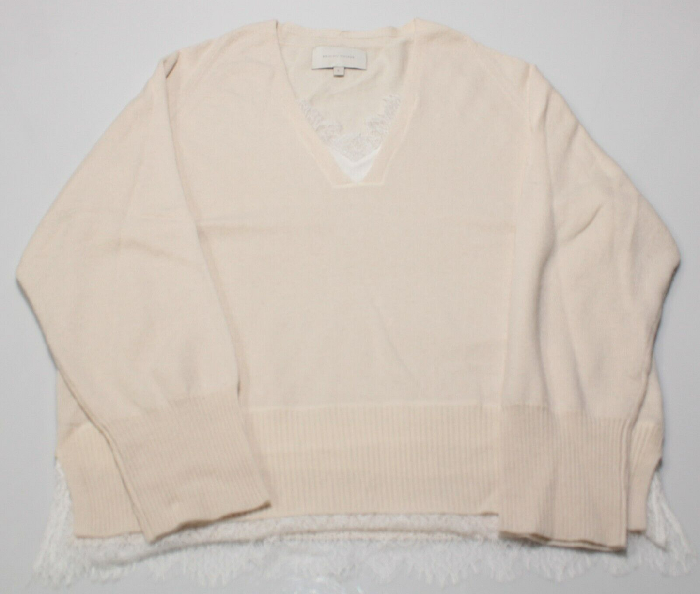Brochu Walker NWT Lace V-Neck Sweater Size Large in Cream Wool/Cashmere Blend