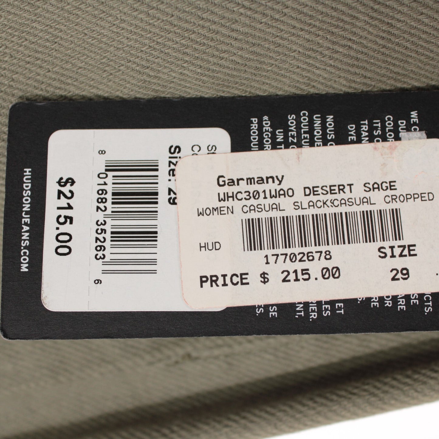 Hudson NWT Jeans Size 29 US Holly High Rise Wide Leg Crop In Green 100% Cotton