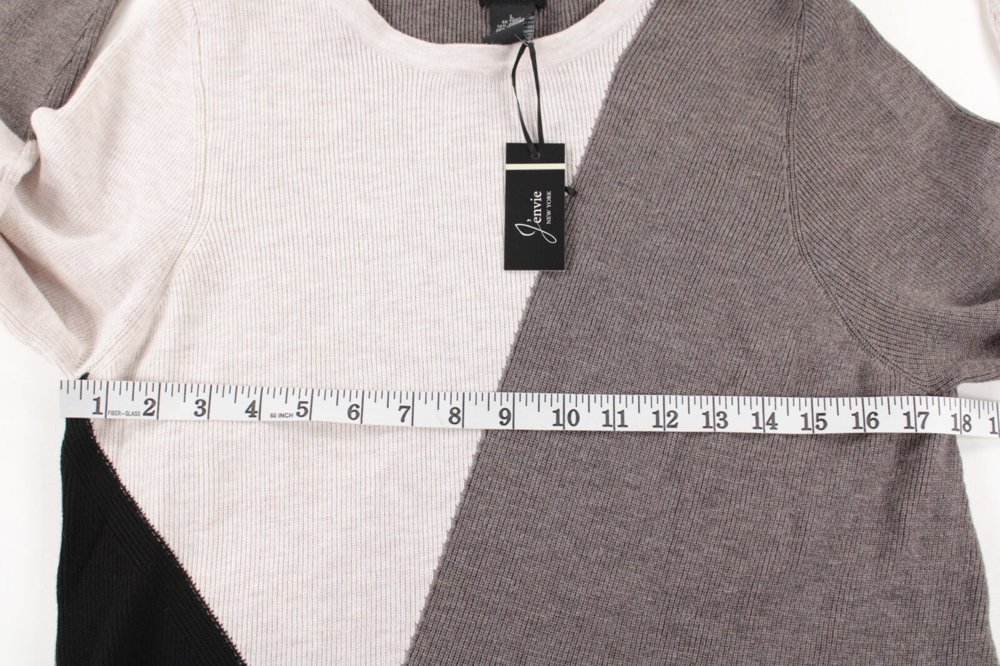 J'Envie NWT Knitted Crew Neck Patchwork Sweater Size Large in Grays/Black w/ Tie