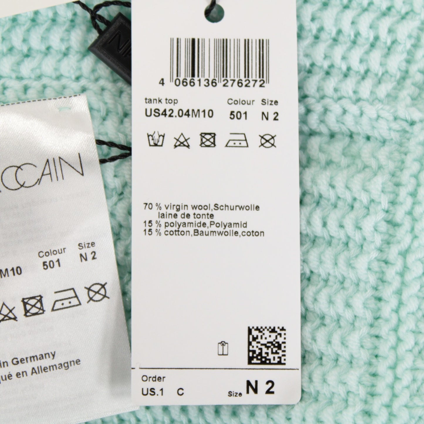 Marc Cain NWT Knitted Sleeveless Top Size N2 US 6 in Solid Light Blue Wool Blend