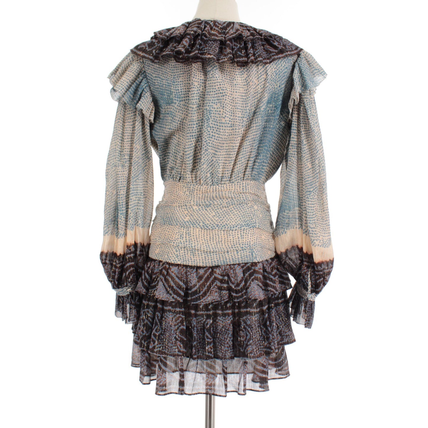 Ulla Johnson NWOT Sara V-Neck Ruffled Mini Dress Size 2 US S in Beige/Brown/Blue