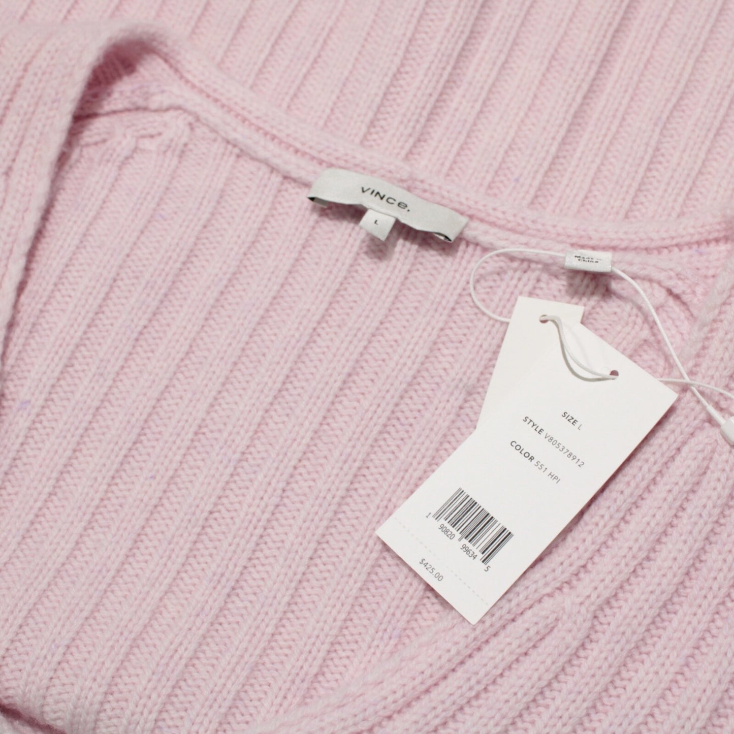 Vince NWT Knit V-Neck Sweater Size Large US In Solid Pink Wool/Cashmere Blend