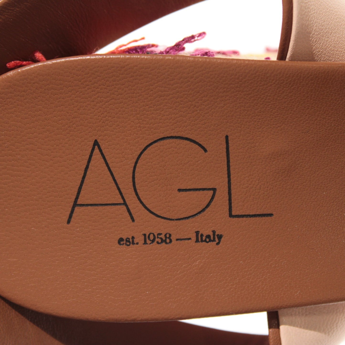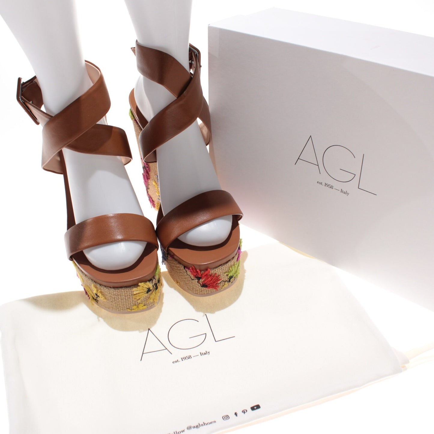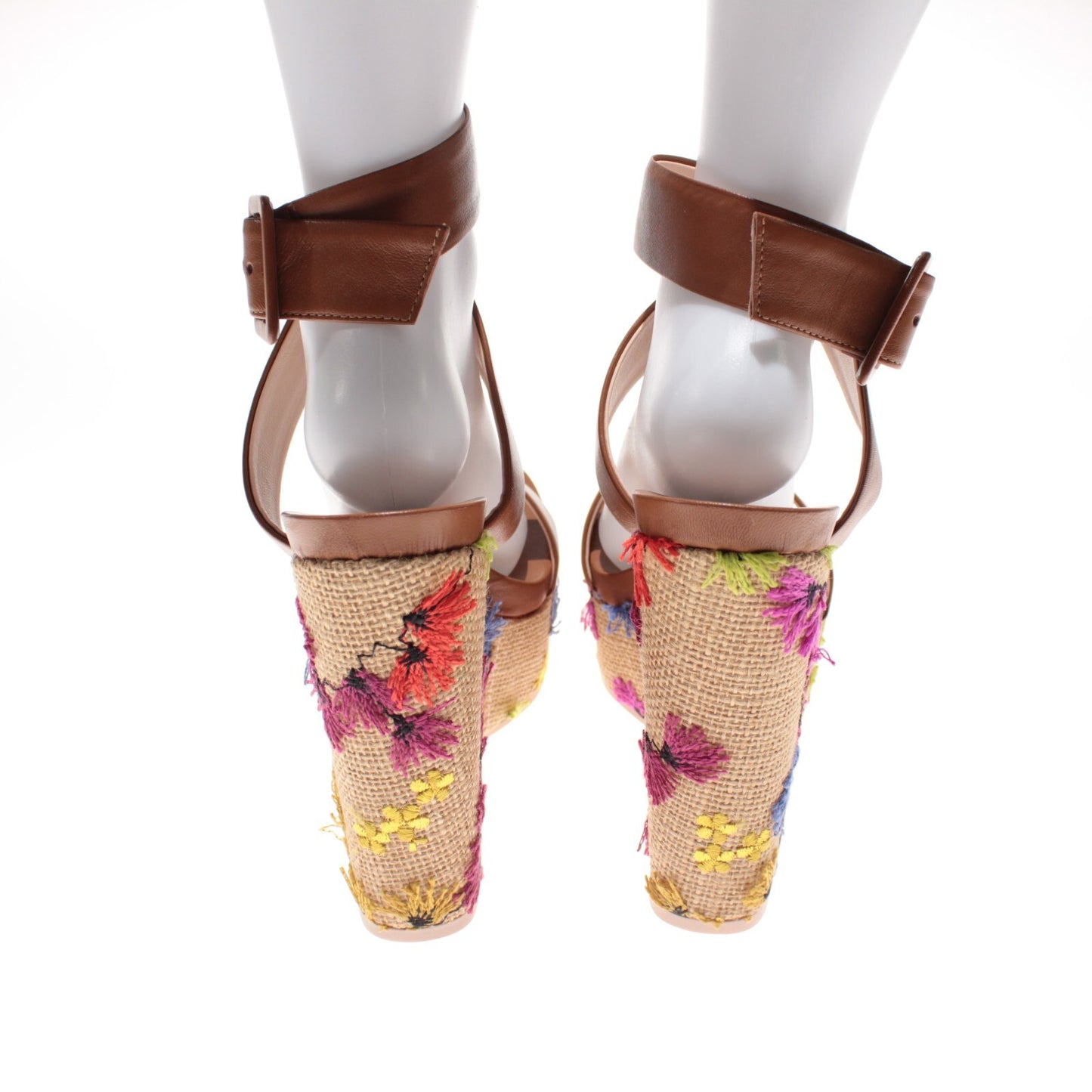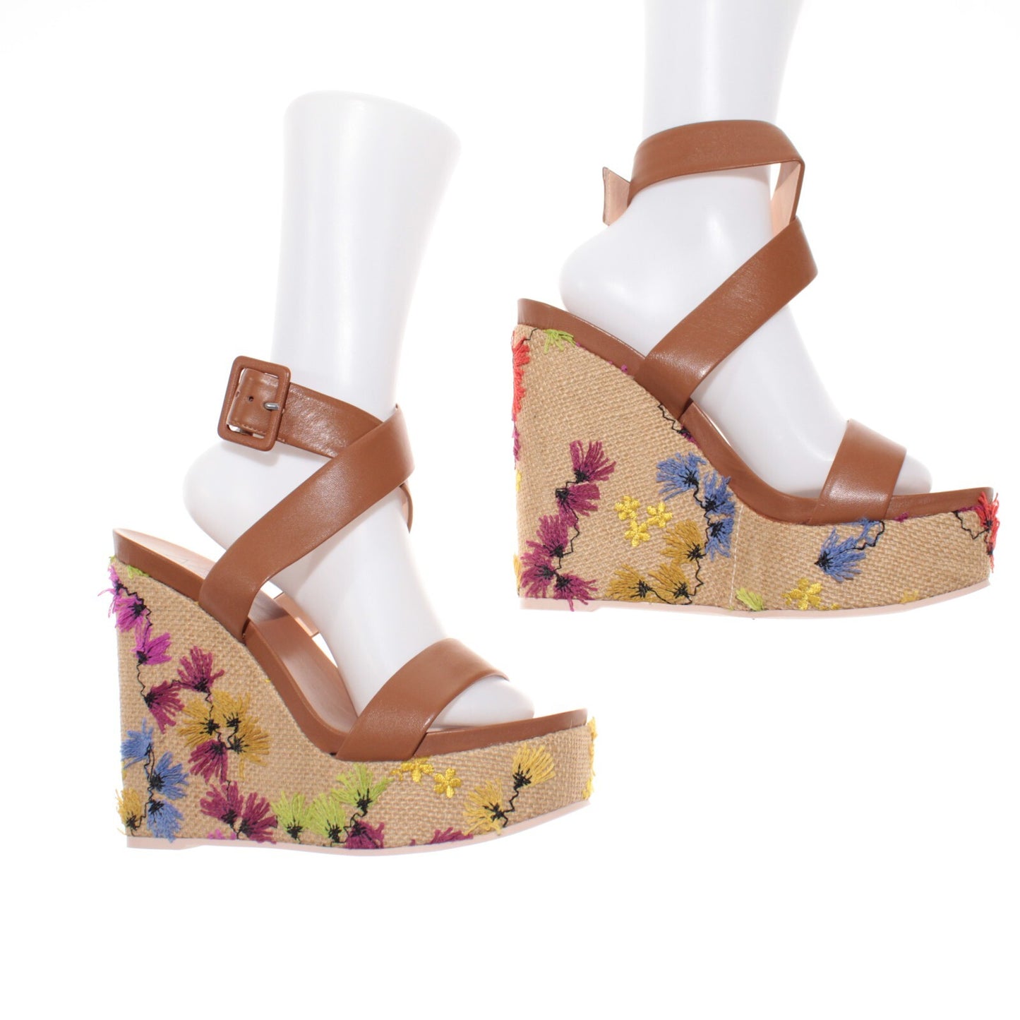 AGL NWB Holly H Embroidered Wedge Leather Sandals Size 40 US 10 in Brown/Multi