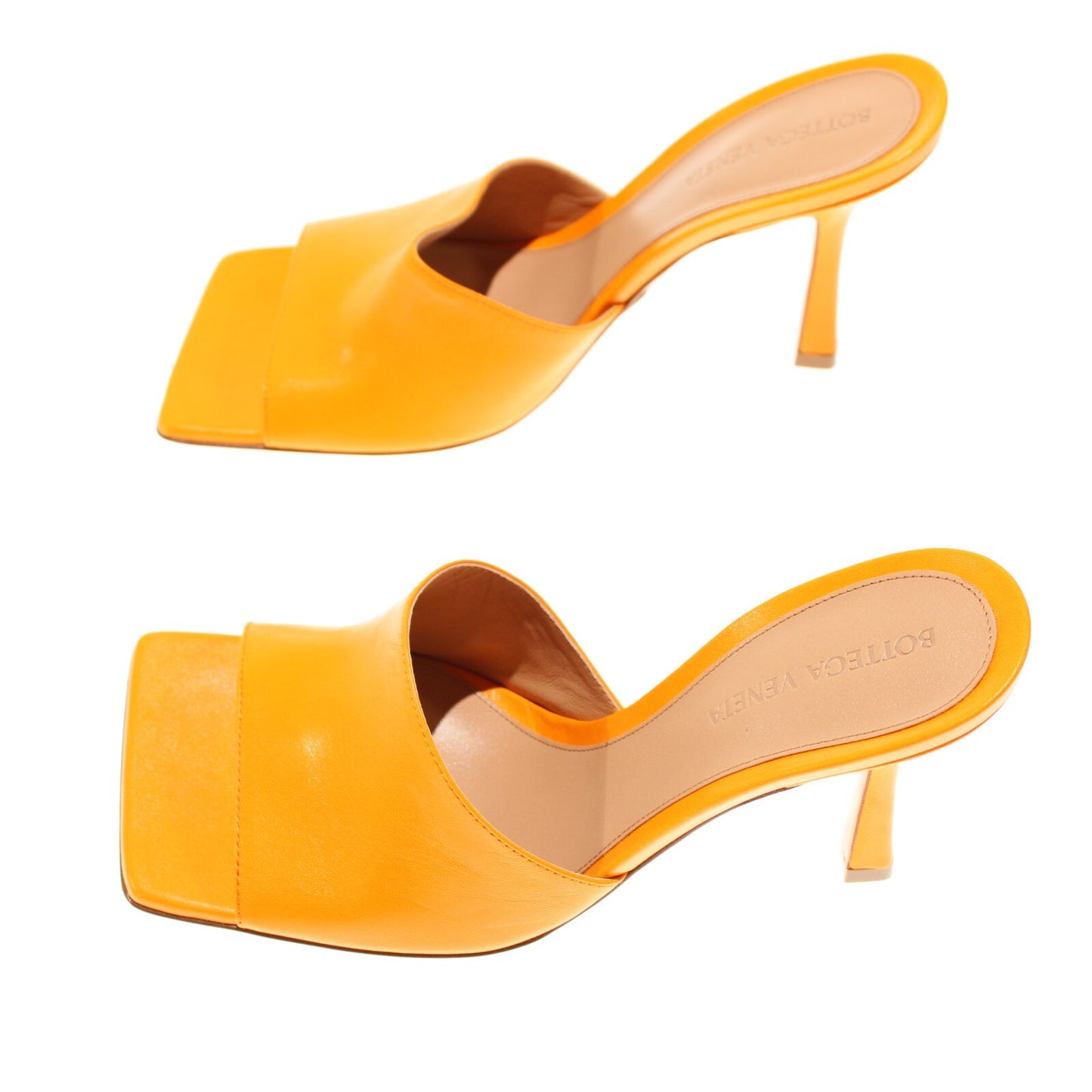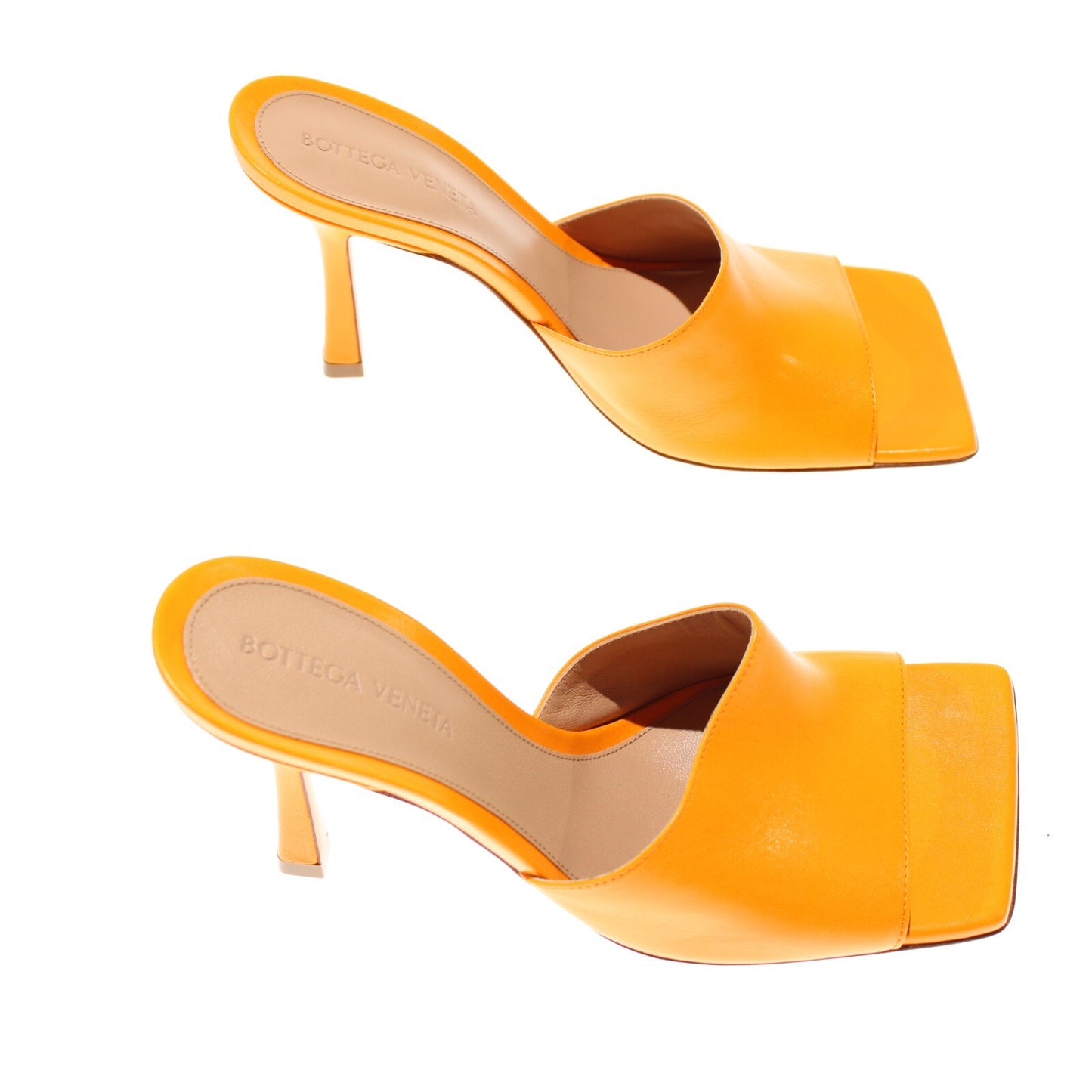 Bottega Veneta NWB Square Toe Sandals Size 36.5 6.5 US In Solid Bright Orange