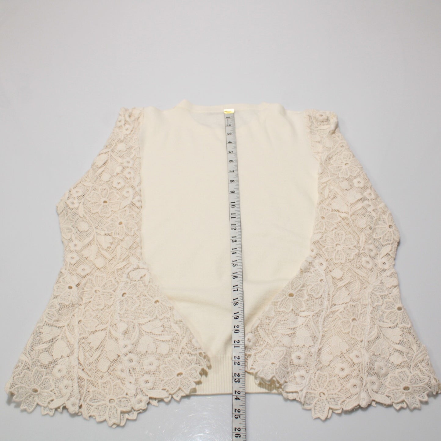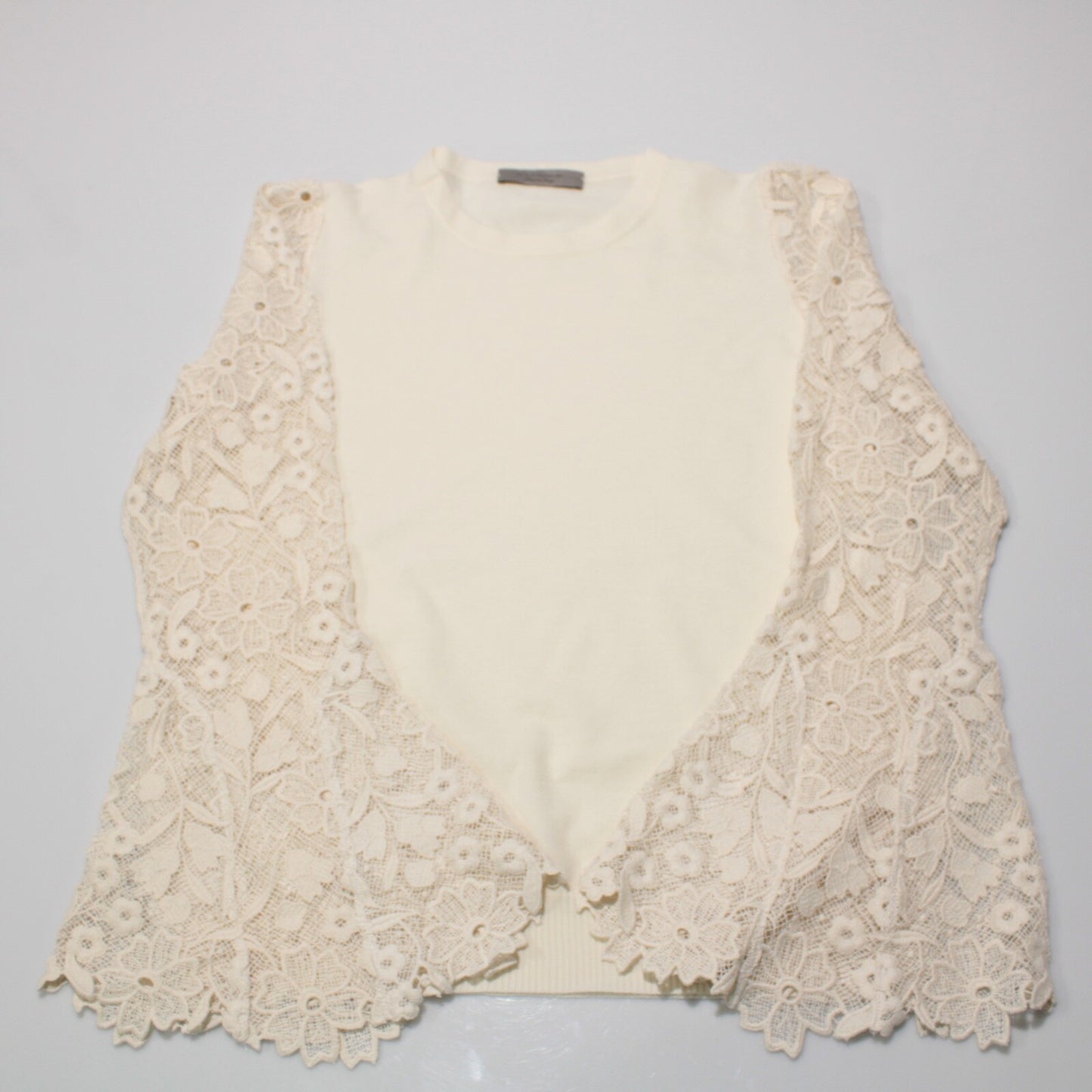 D. Exterior NWT Crew Neck Sweater w/ Lace Sleeves Size XL Ivory Wool Blend