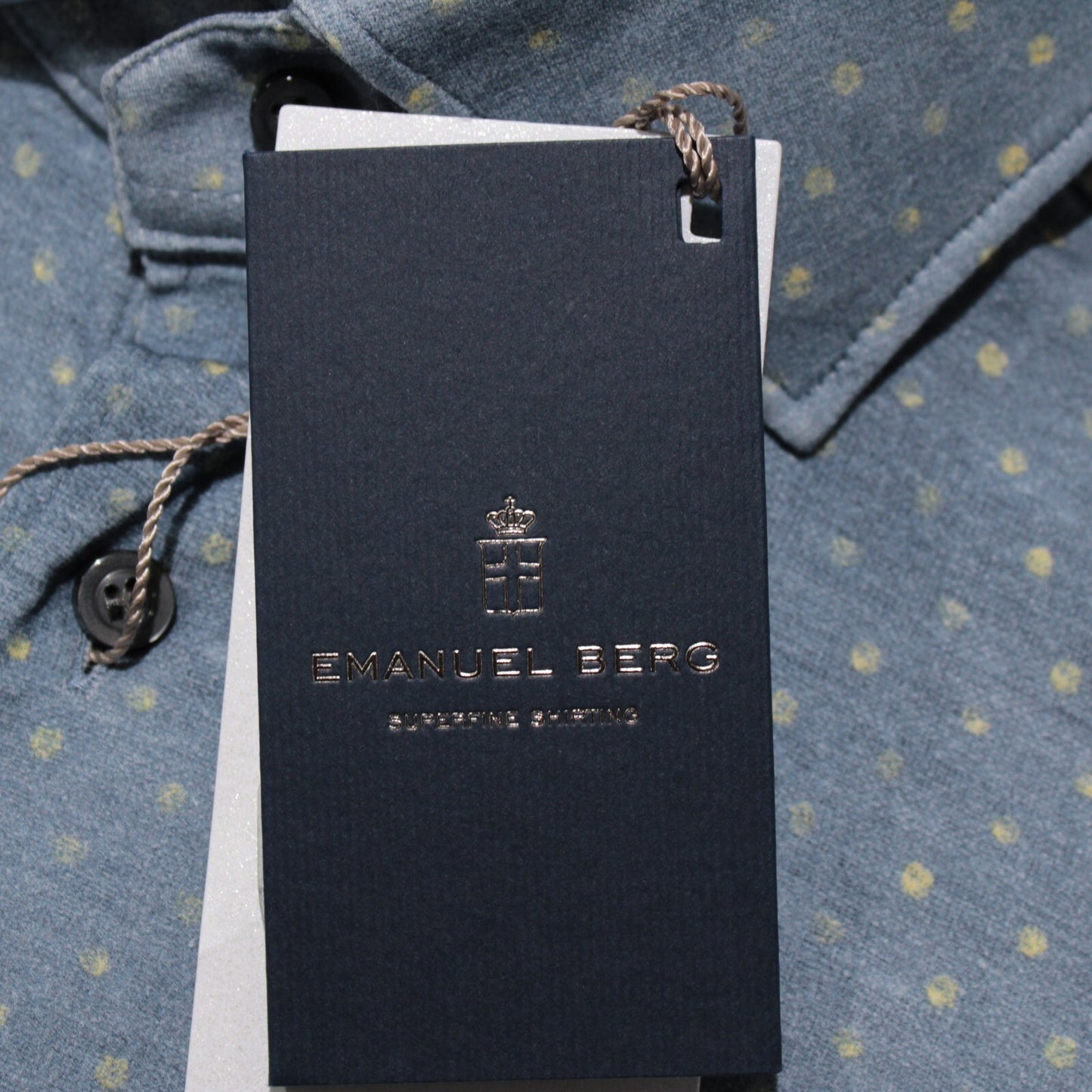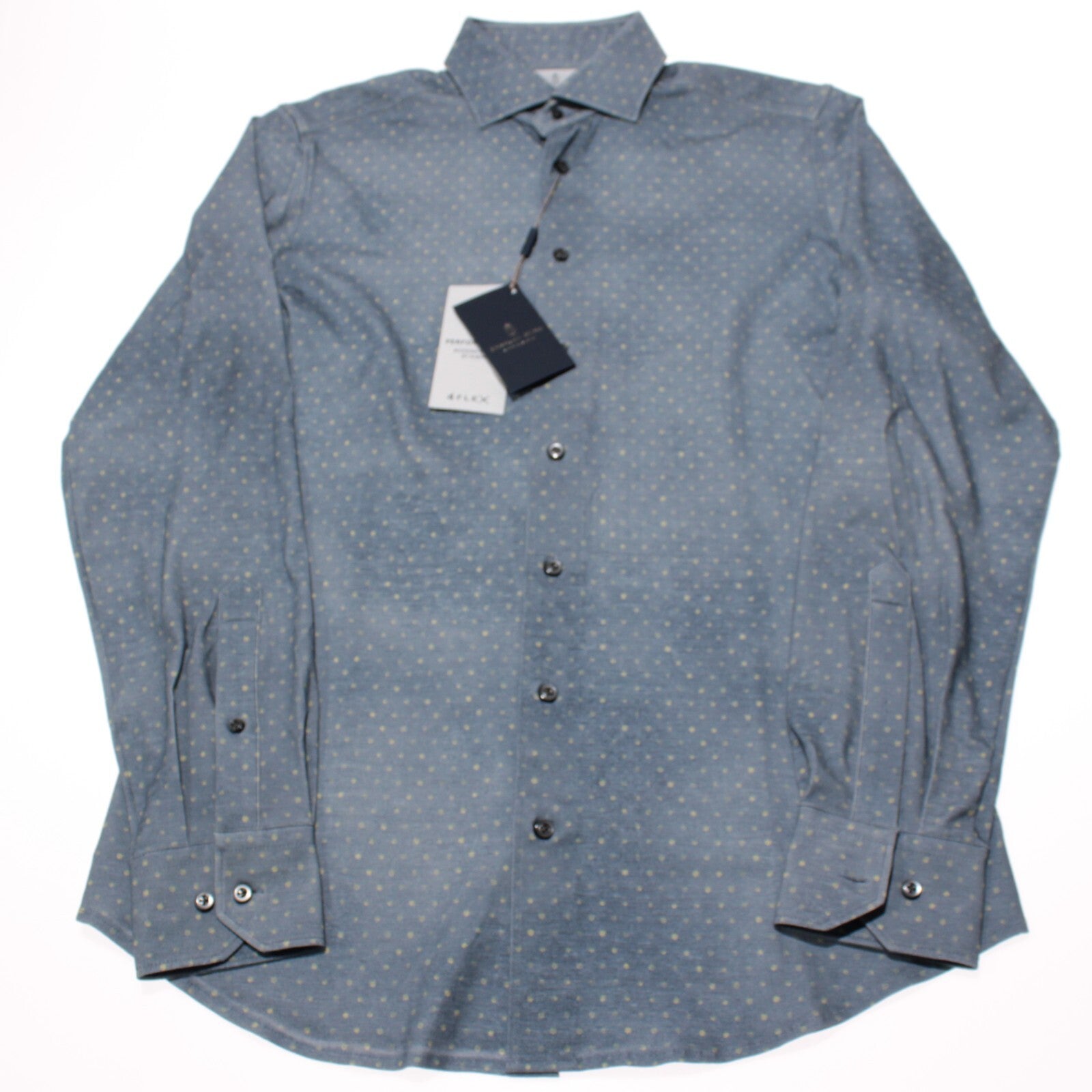Emanuel Berg NWT Byron Casual Button Down Shirt Size 38 15 S Blue w/ Polka Dots