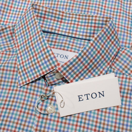 Eton NWT Casual Button Down Shirt Size 38 15 S Contemporary Fit in Blue/Multi