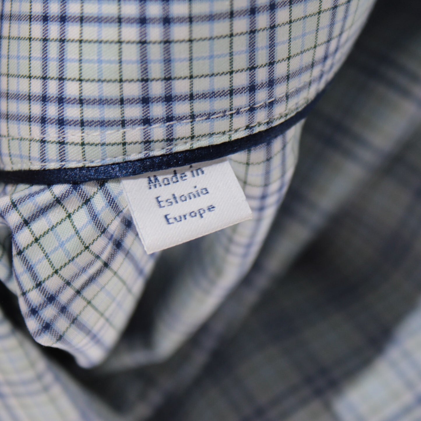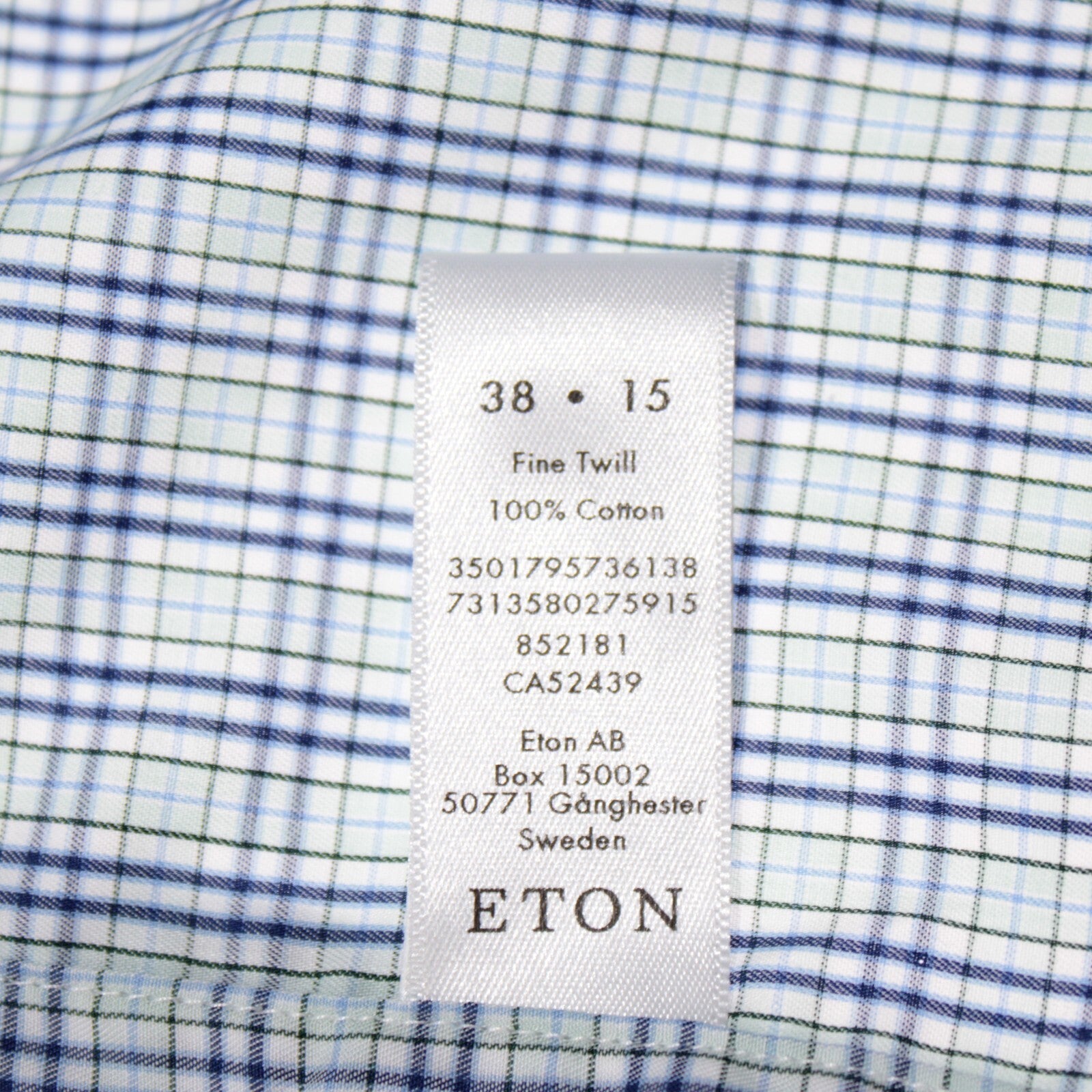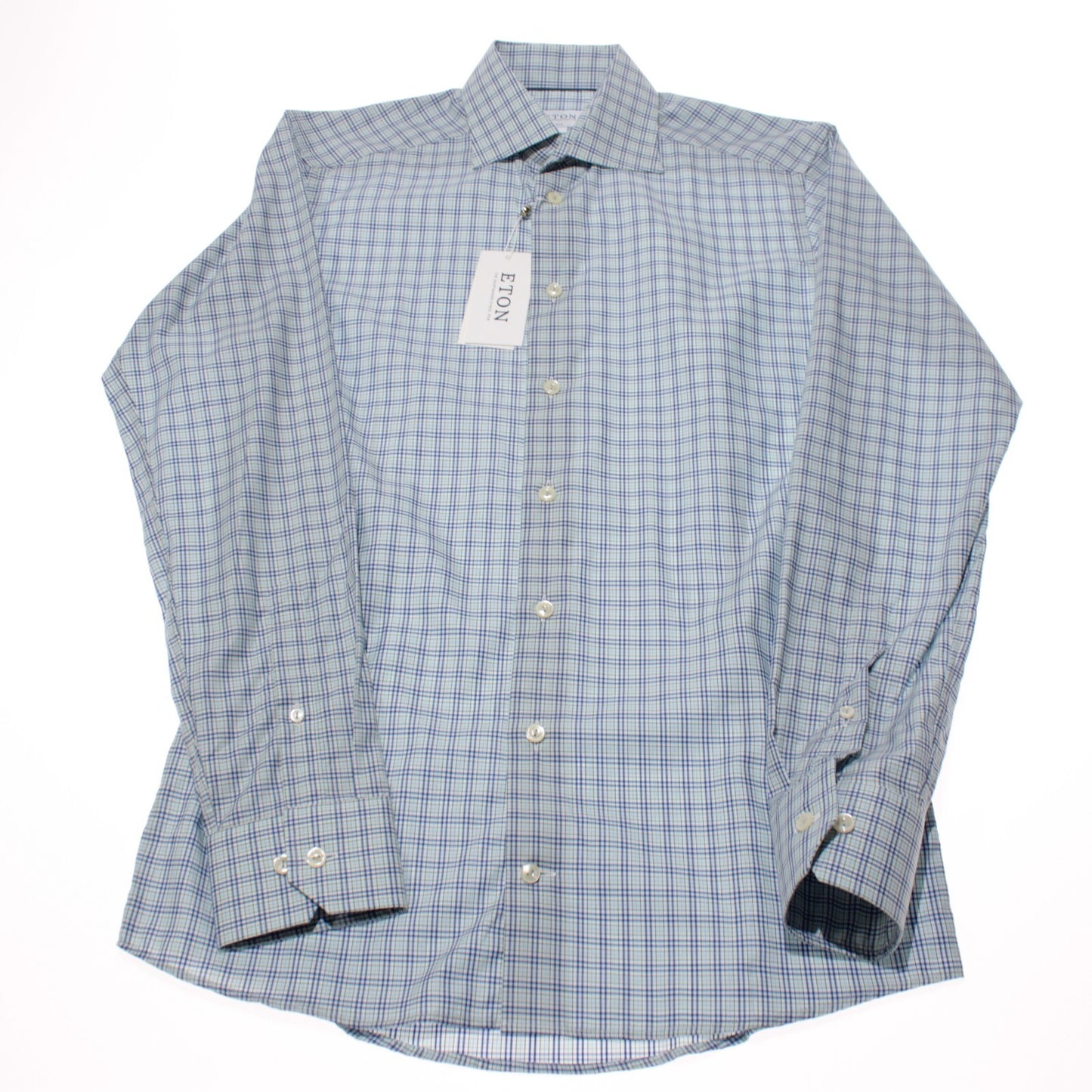 Eton NWT Casual Button Down Shirt Sz 38 15 S Slim Fit in Green/Blue 100% Cotton