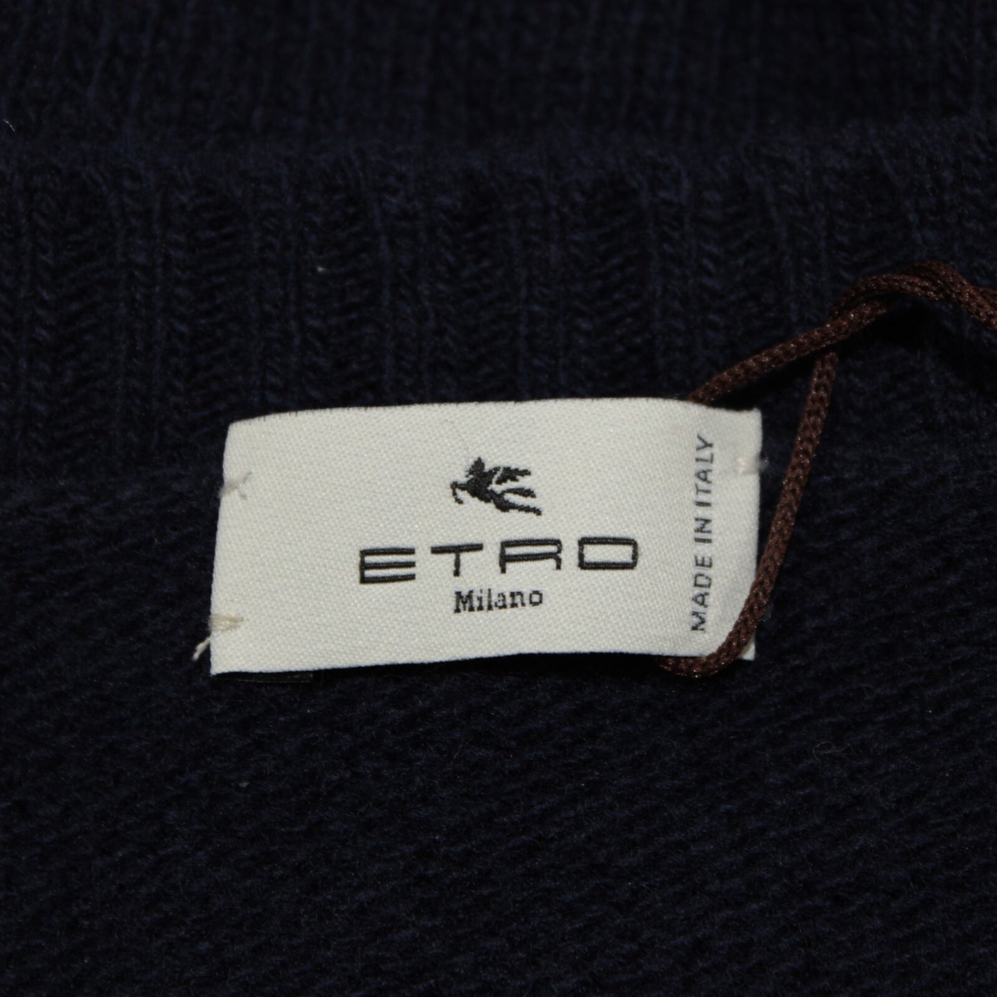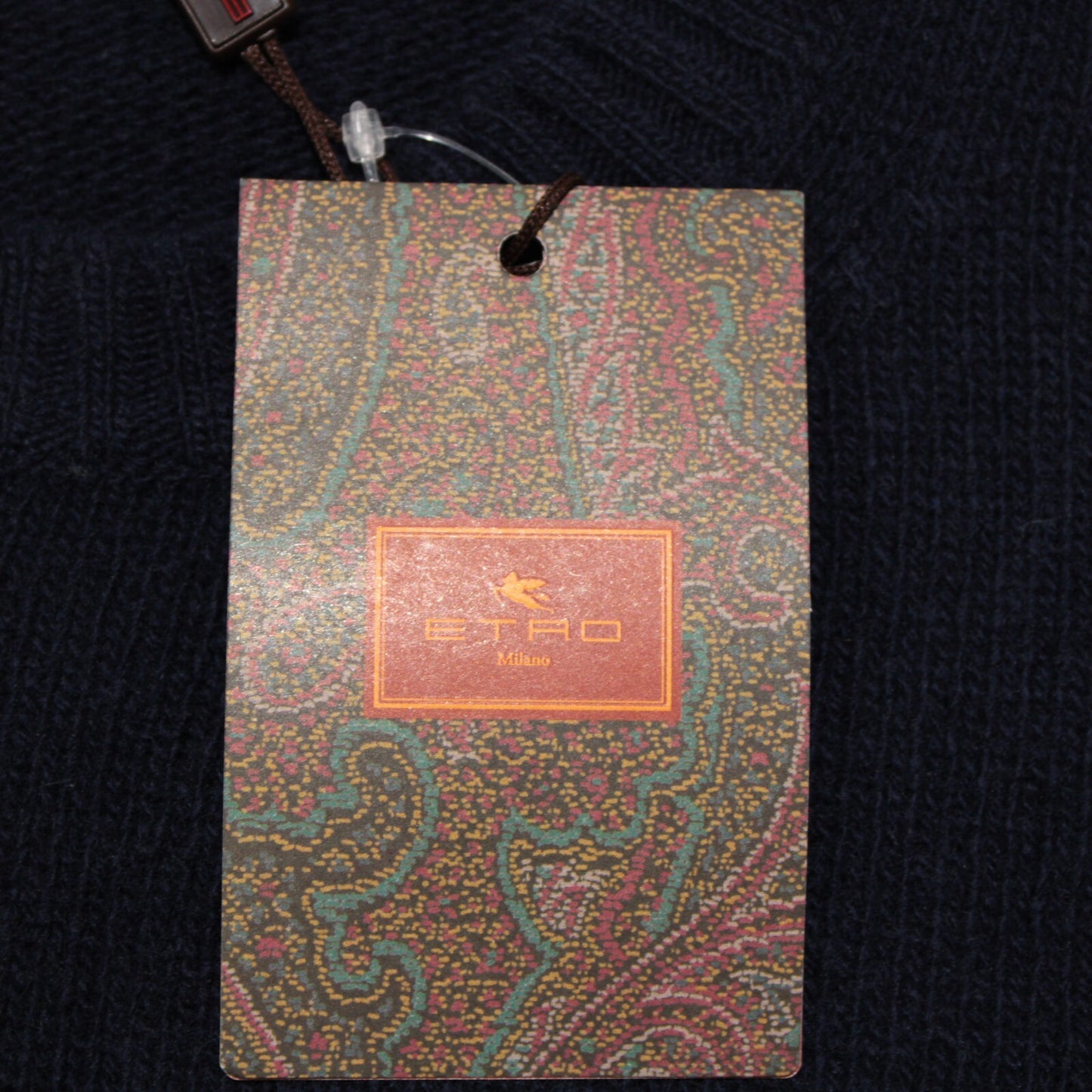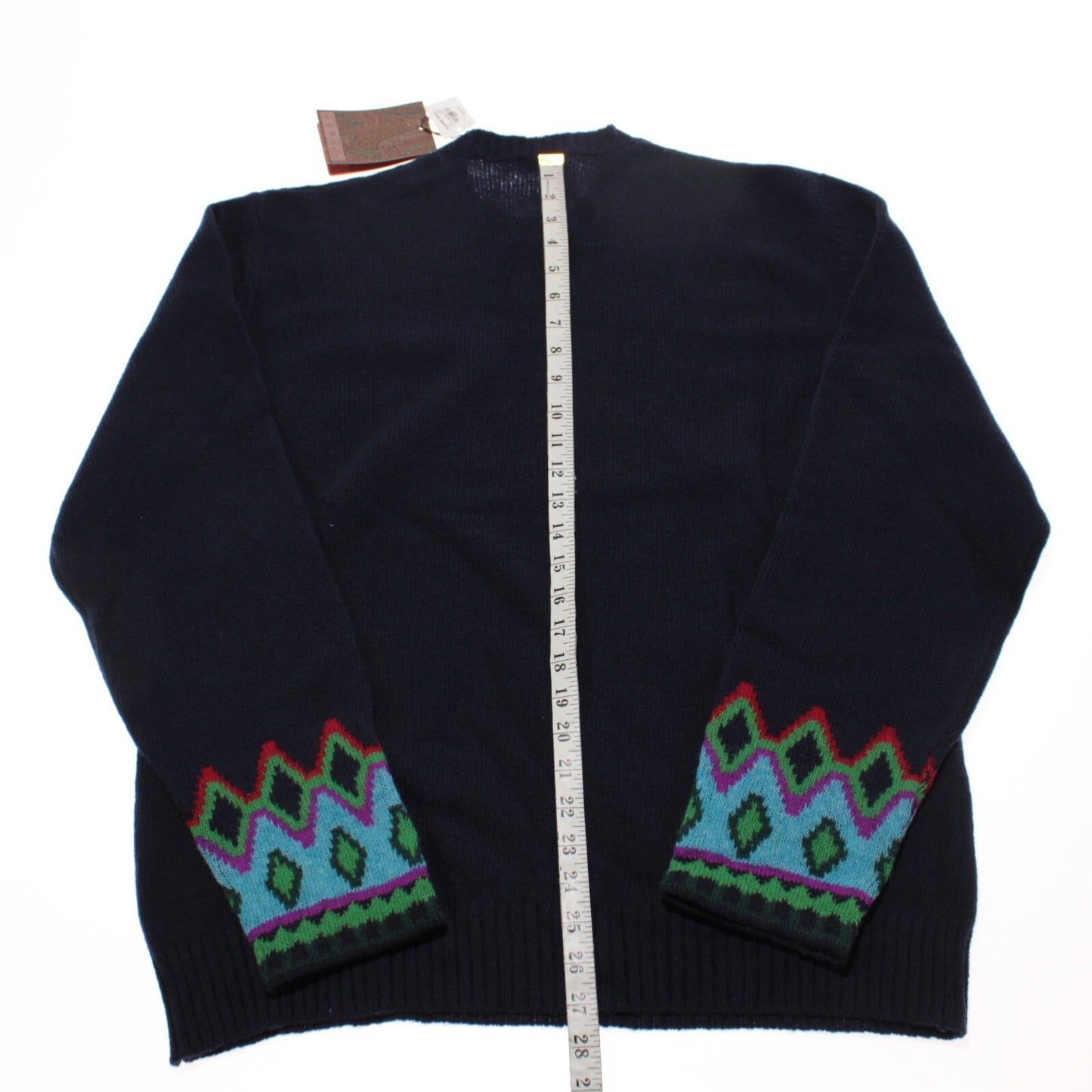Etro NWT Crew Neck Sweater Size L In Solid Blue W/ Multicolor Sleeves 100% Wool