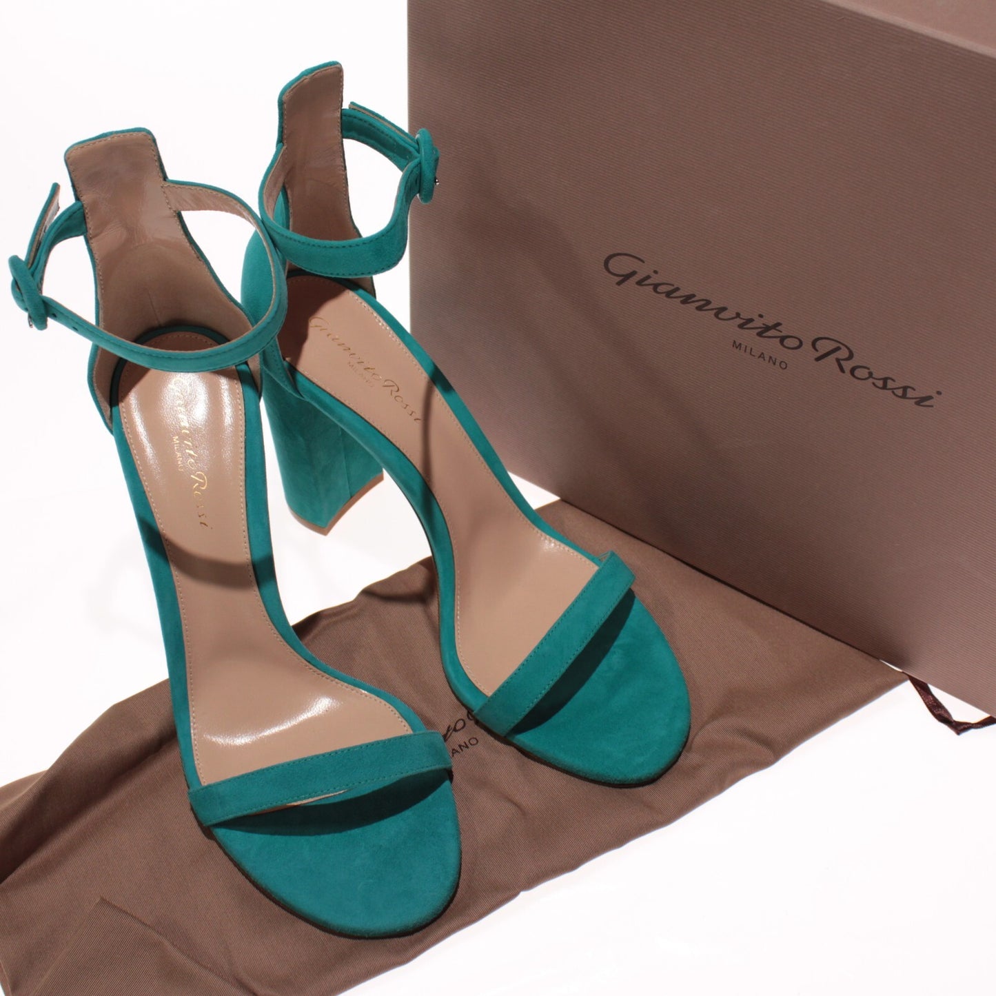 Gianvito Rossi NWB Gaeta Block Heeled Sandals Size 39.5 (US 9.5) in Teal Suede