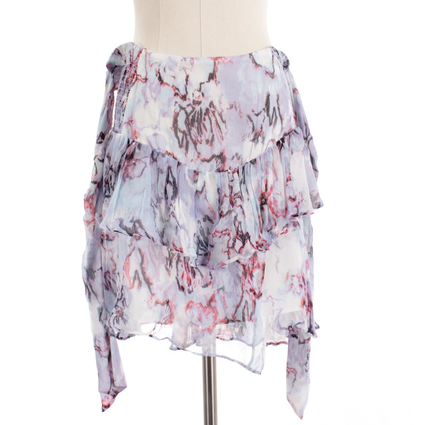 IRO NWT Joric Tie-Front Printed Ruffle Mini Skirt Size 40 US 8 in Lilac/Multi