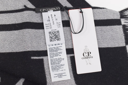 C.P. (CP) Company NWT Black and White with Large Logo 100% Wool Scarf