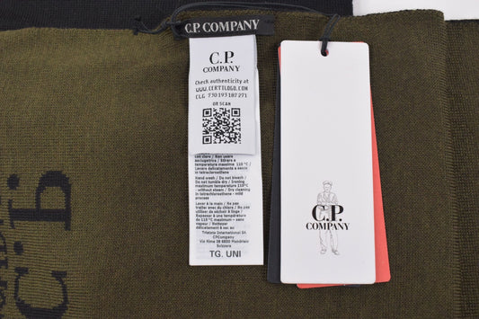 C.P. (CP) Company NWT Black w/ Army Green Logo & Underside 100% Wool Knit Scarf
